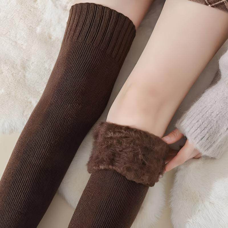 过膝袜子女高筒袜秋冬季加绒加厚保暖大腿纯色冬天半截长筒袜膝盖