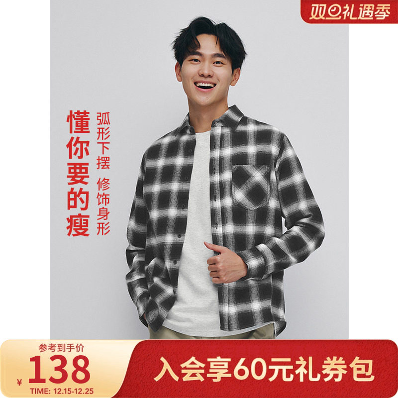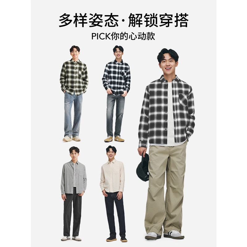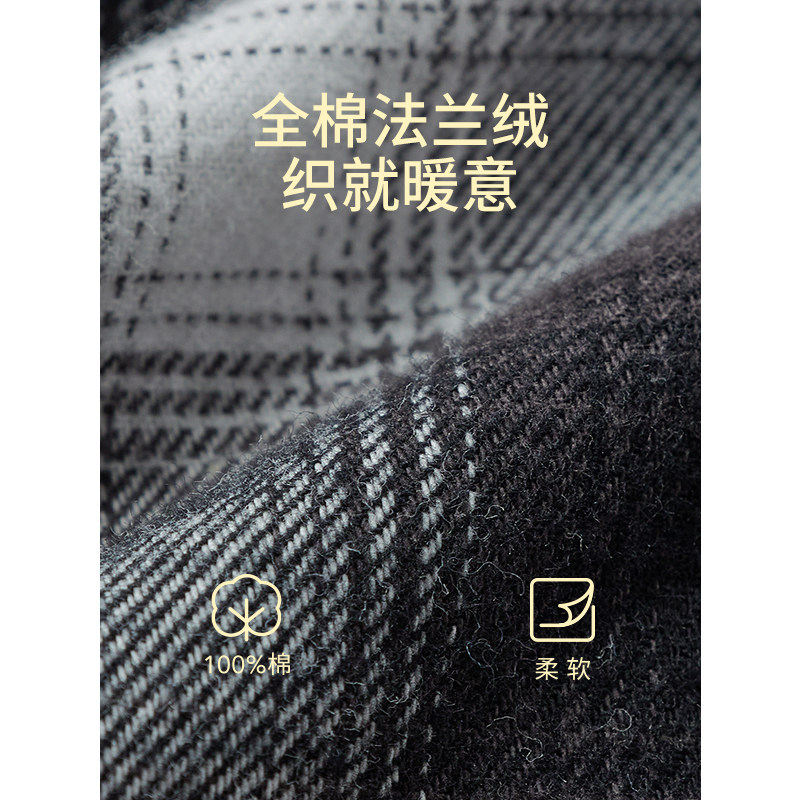啄木鸟秋季新款男士长袖100%全纯棉磨毛格子衬衫 高级感休闲衬衣