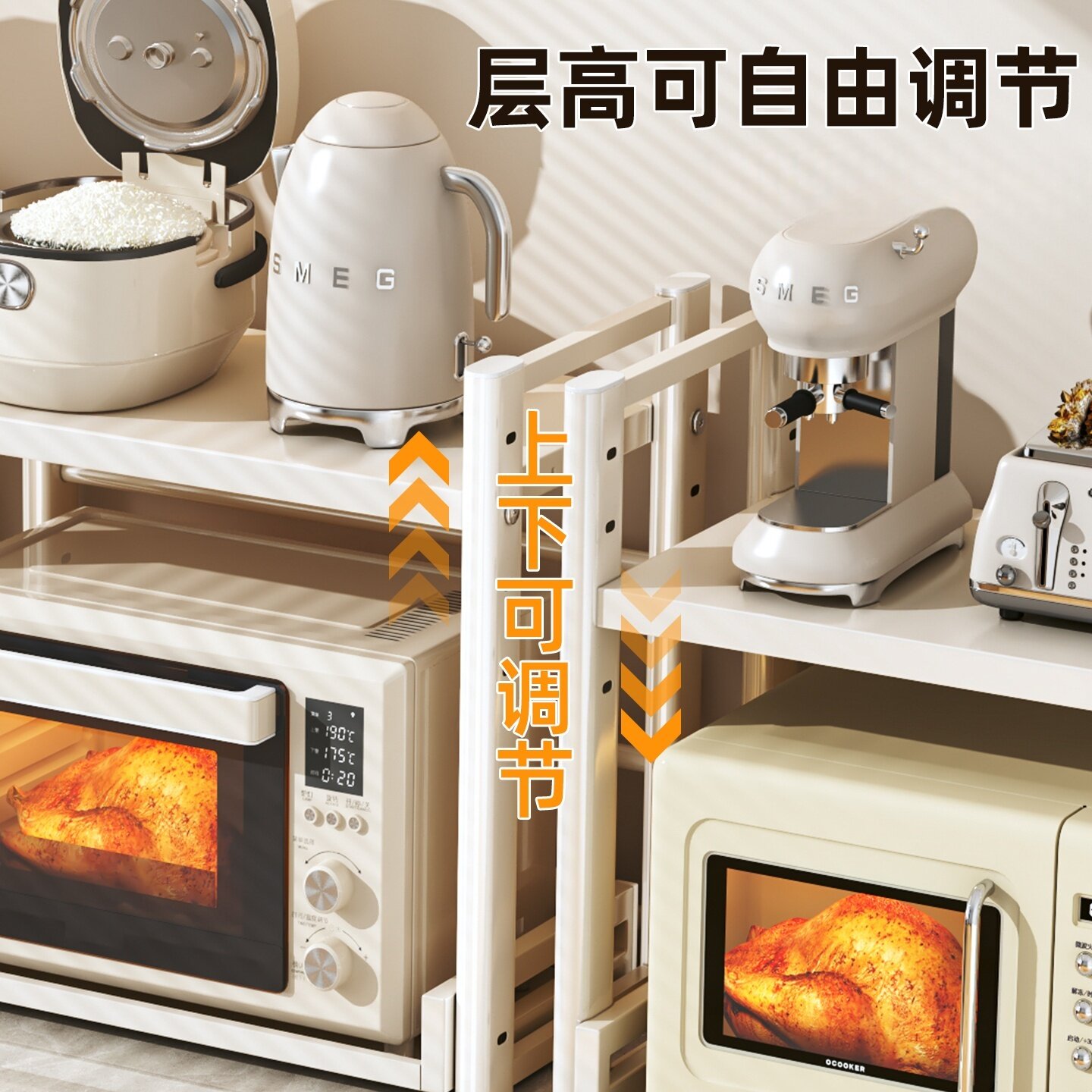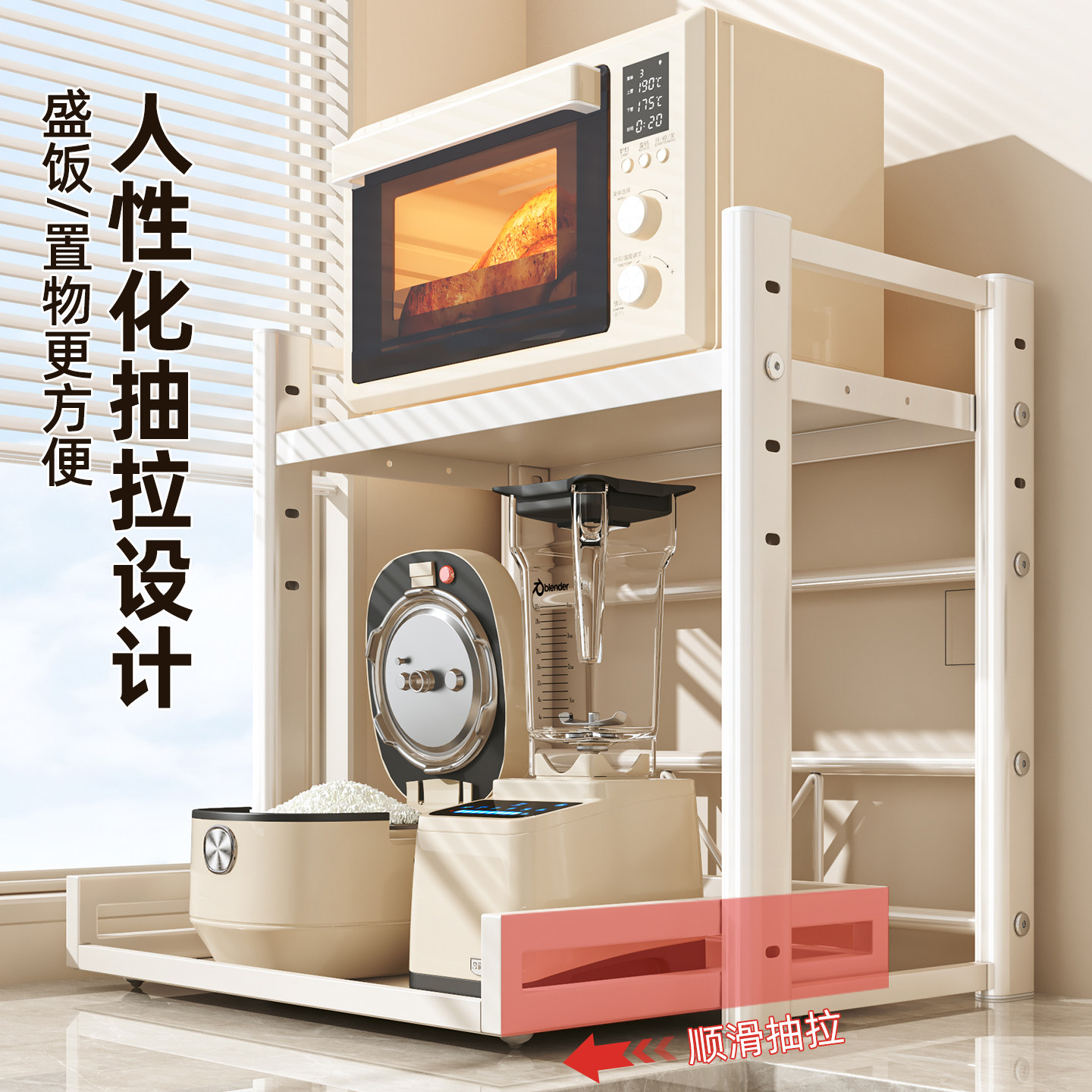 厨房微波炉置物架家用多功能电饭煲烤箱专用台面抽拉收纳架子锅具