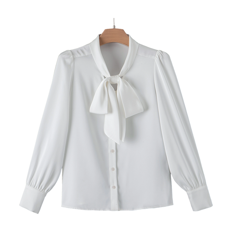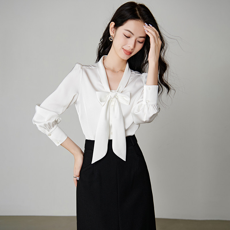 晚白2026年春新款纯色时髦气质上衣蝴蝶结干练通勤百搭衬衫女衬衣