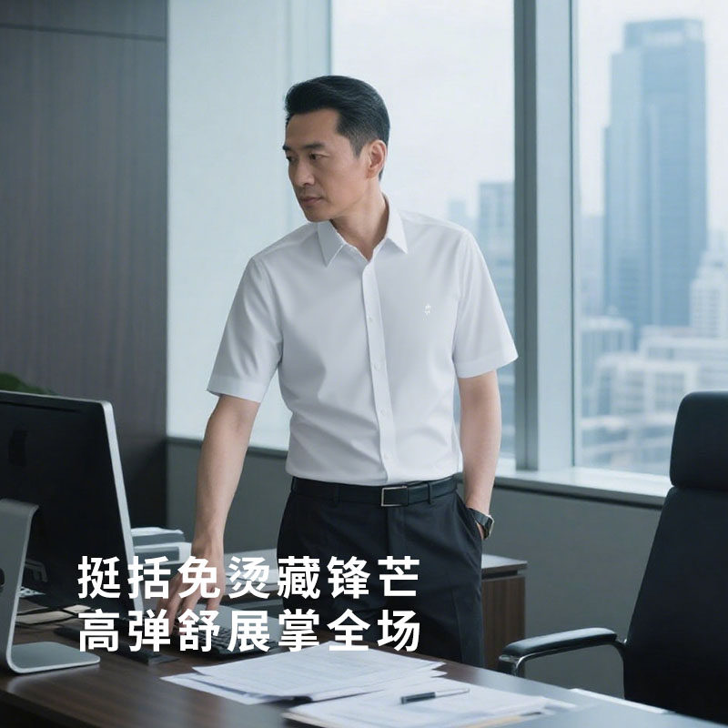欧定头等舱衬衫男短袖白色夏季新款免烫抗皱高端休闲商务男装衬衣