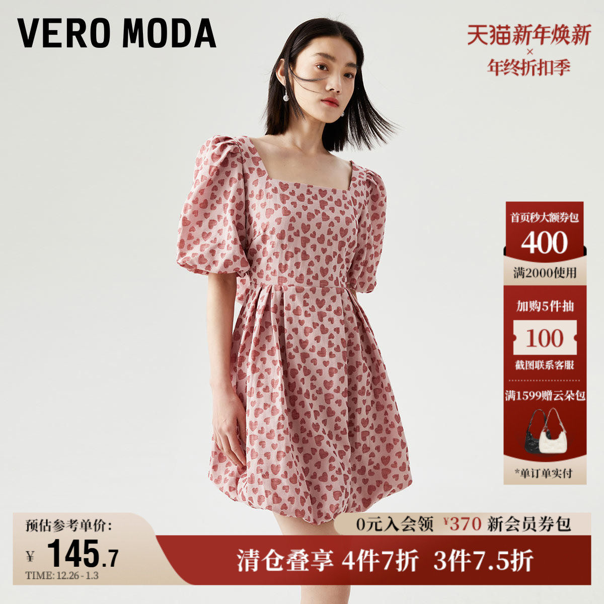 Vero Moda奥莱连衣裙子秋冬清仓优雅气质公主袖方领可爱A字减龄女
