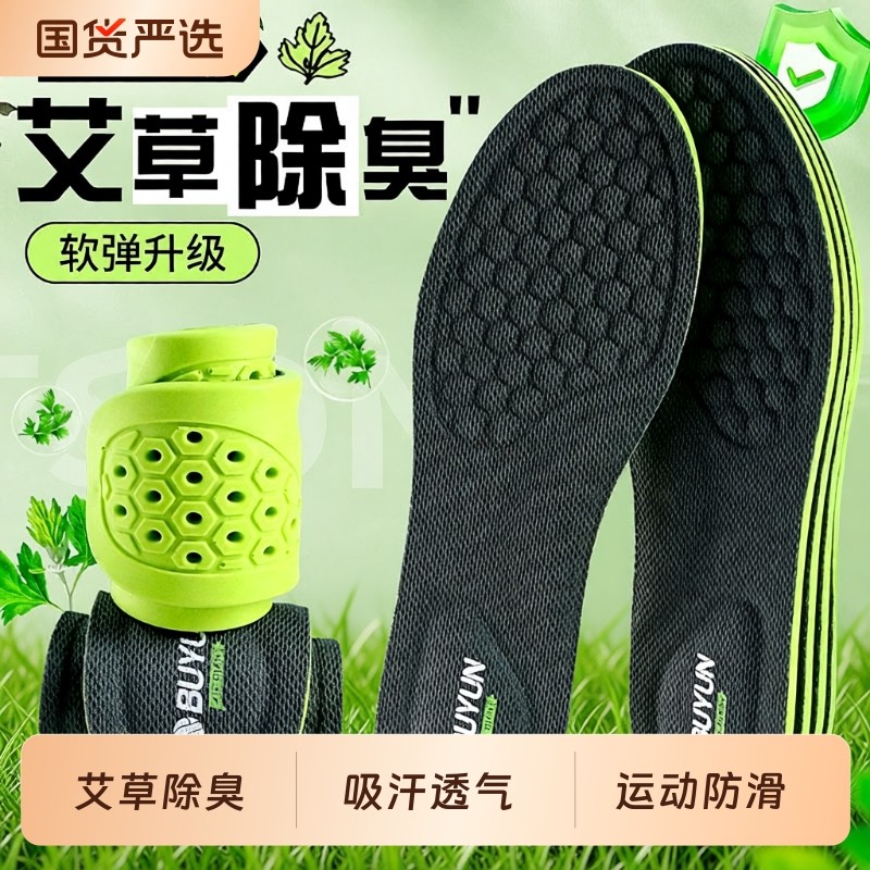 鞋垫男吸汗防臭艾草除臭鞋垫女吸汗透气软底舒适夏天网眼运动鞋垫