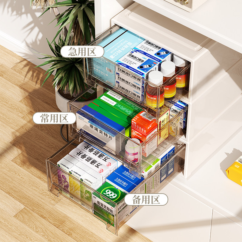 透明药箱药物收纳盒抽屉式家用医药箱大容量药品收纳柜多层家庭装