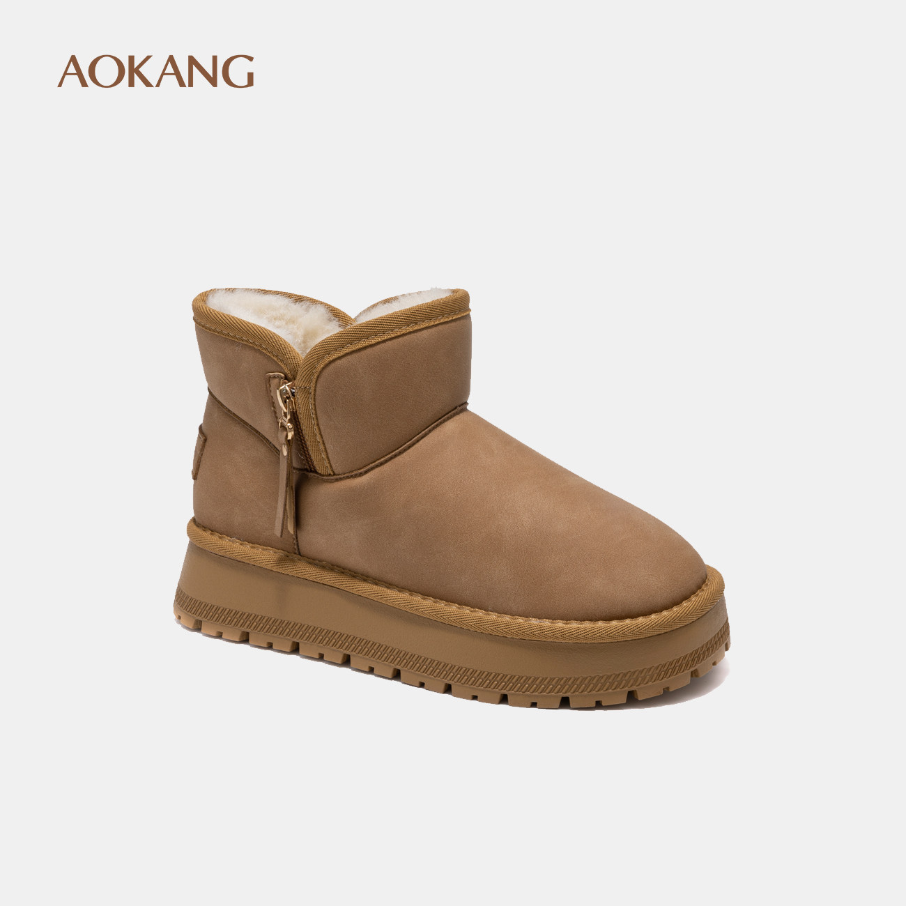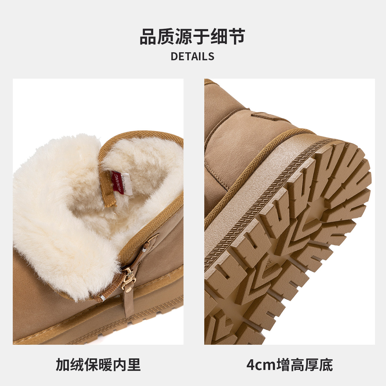 奥康女鞋冬季简约时尚加厚保暖雪地靴抗寒防滑套脚毛毛鞋