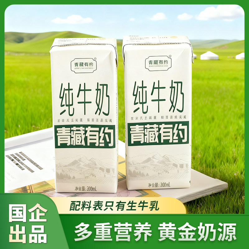 青藏有约3.2g原生乳蛋白宁夏牧场产区200ml*10盒纯牛奶无添加经典