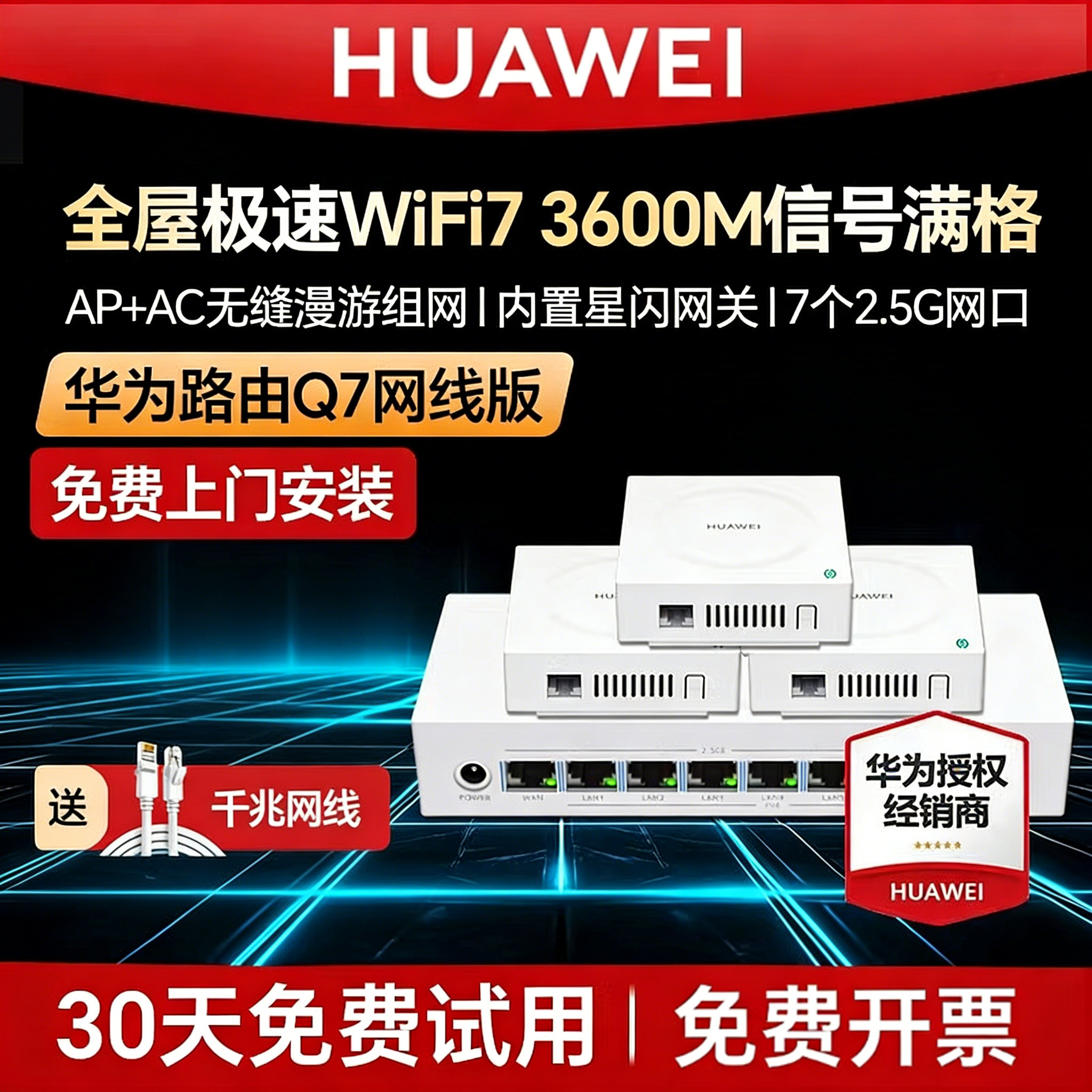 华为q7子母路由器网线版千兆端口ap面板家用全屋覆盖无线wifi6路由器大户型别墅poe电力线Q6网线版mesh组网