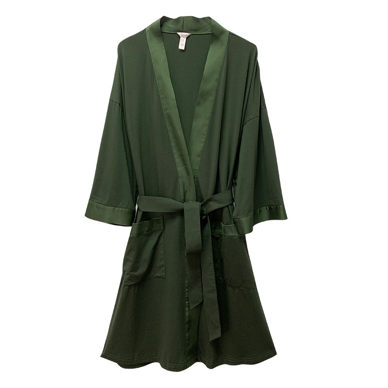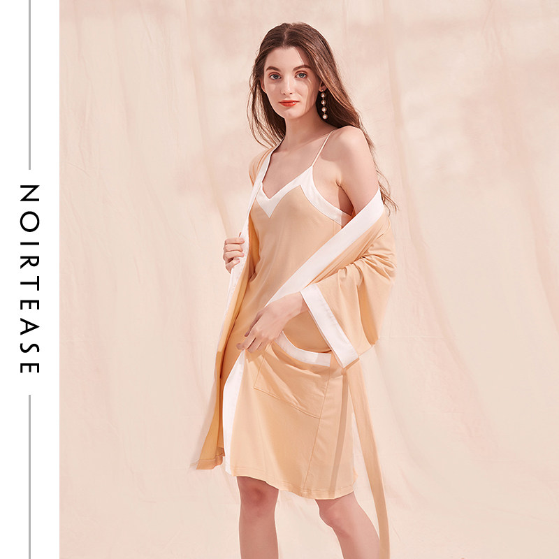 NoirTease性感纯棉春秋薄款女士长袖系带睡袍长款家居服浴袍睡衣