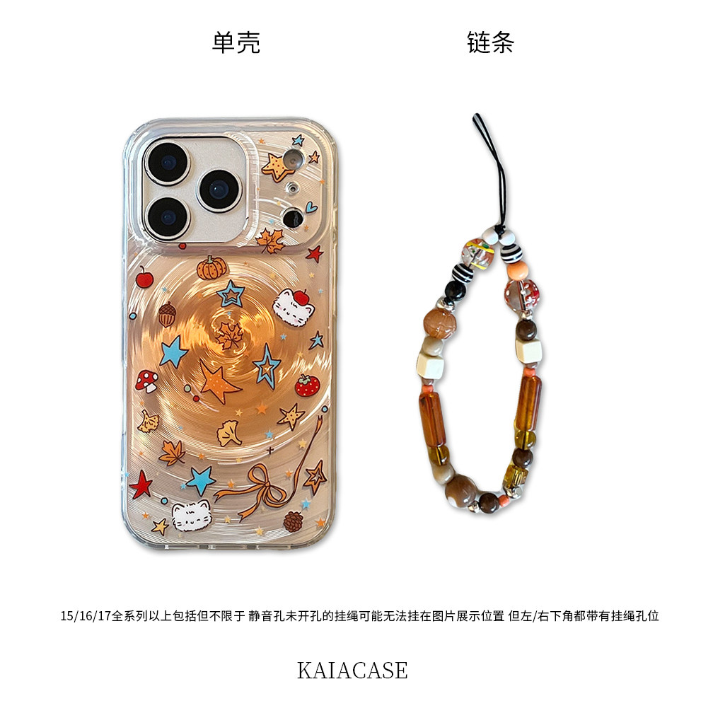 kaia 趣味ins卡通猫咪枫叶蛋糕适用苹果17promax手机壳iphone16pro新款13女14pro带链条15pro全包防摔手机套
