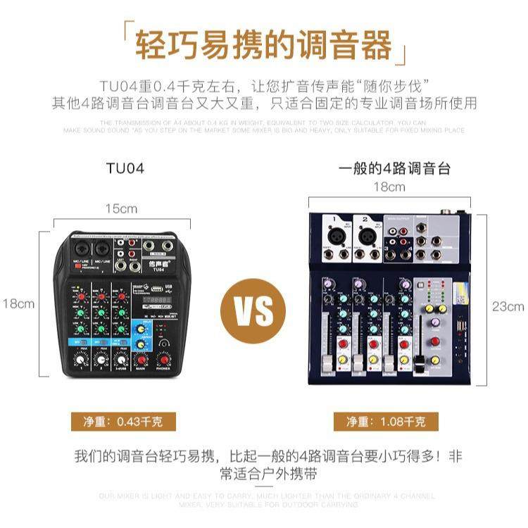 跨境爆款蓝牙声卡数字小型4路调音台专业舞台直播usb迷你混音器