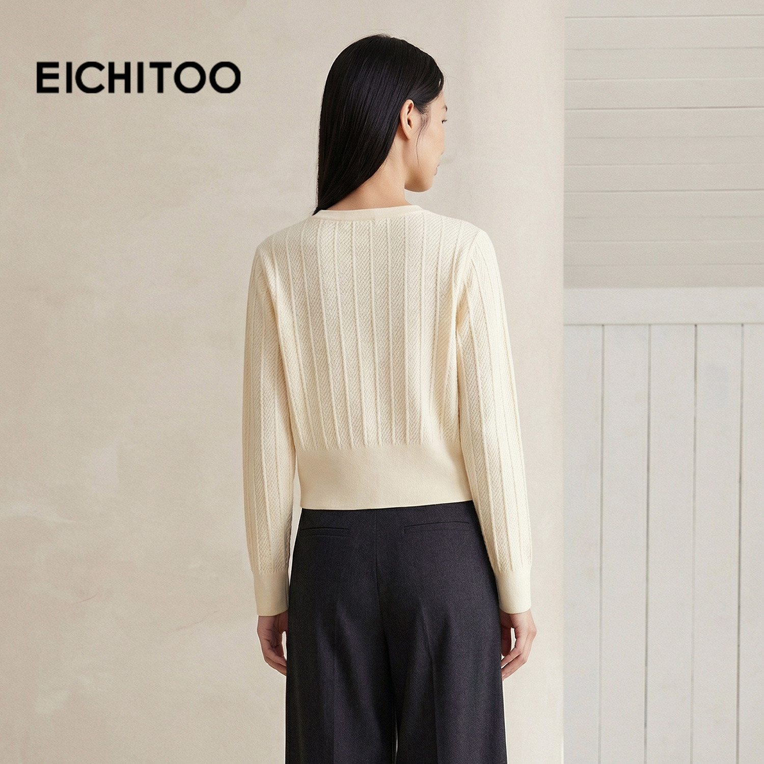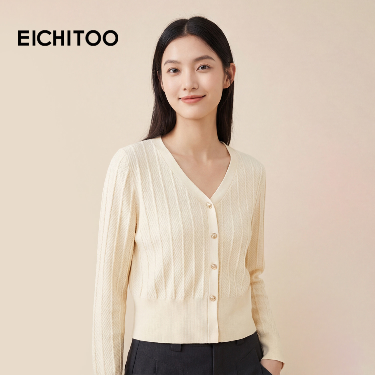 爱居兔长袖针织衫女春秋新款肌理感显瘦V领慵懒毛衫上衣
