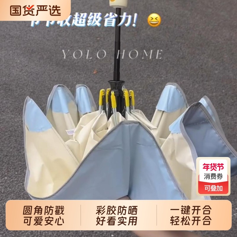 圆角节节收防紫外线雨伞女晴雨两用伞遮阳伞加固抗风学生一键折叠