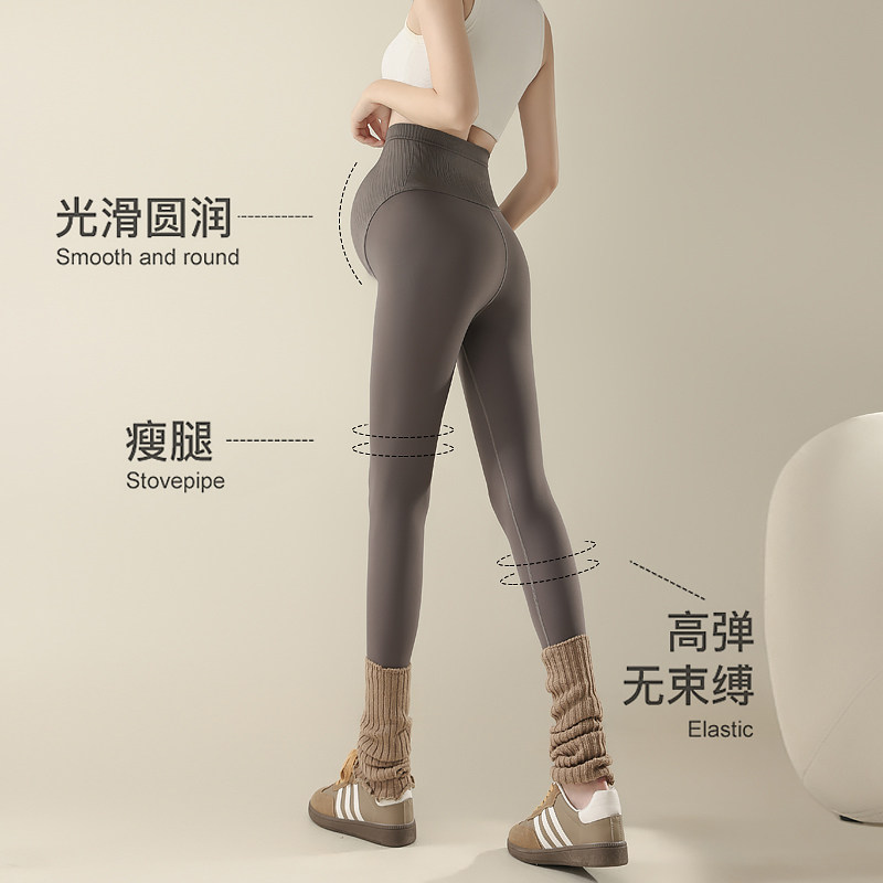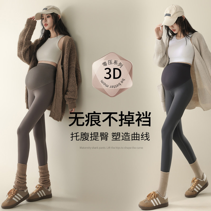 嫚熙裸感孕妇鲨鱼裤秋冬外穿加绒打底裤撑托提臀不勒肚瑜伽裤新款