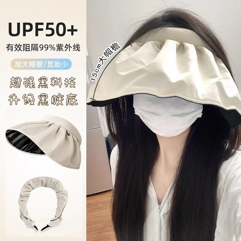 蕉下黑胶贝壳帽倍护空顶防晒全遮光显脸小女款大帽檐遮阳太阳帽子