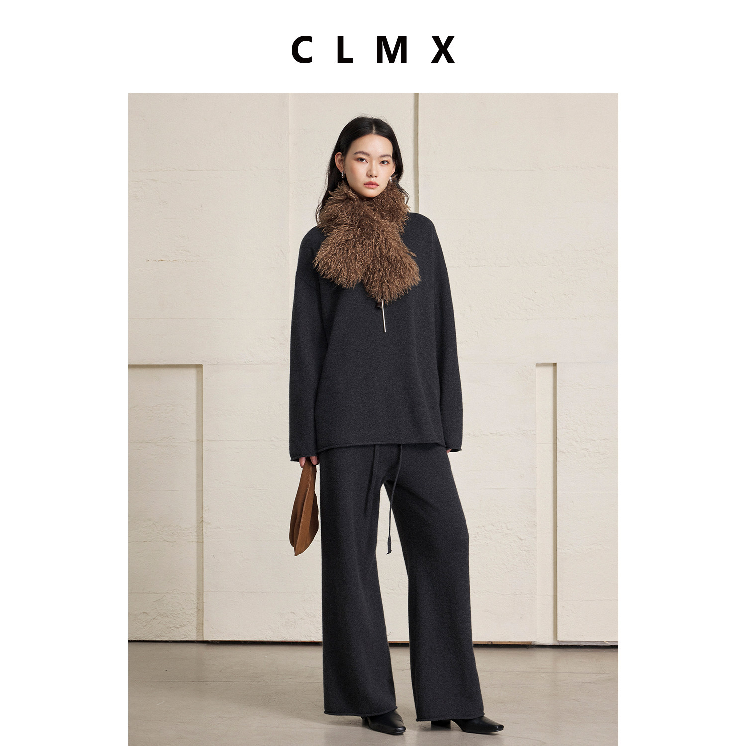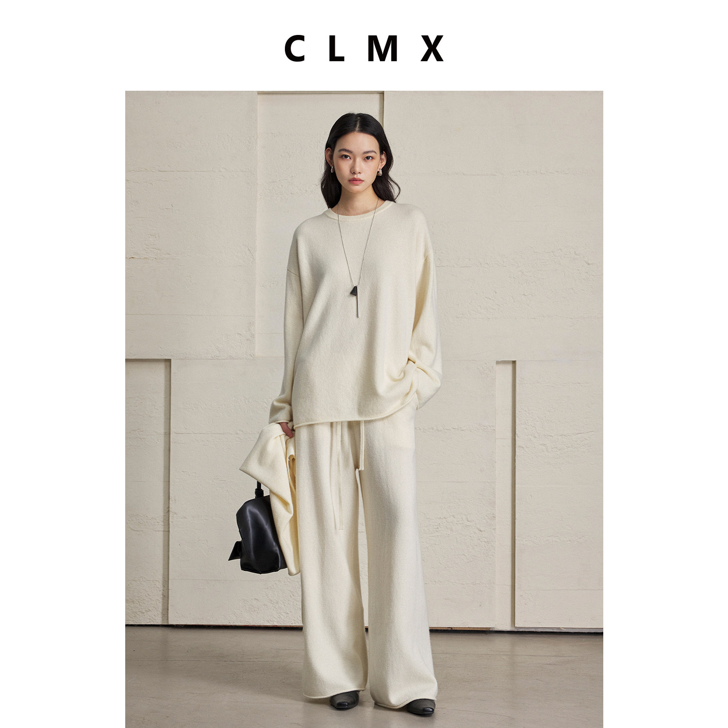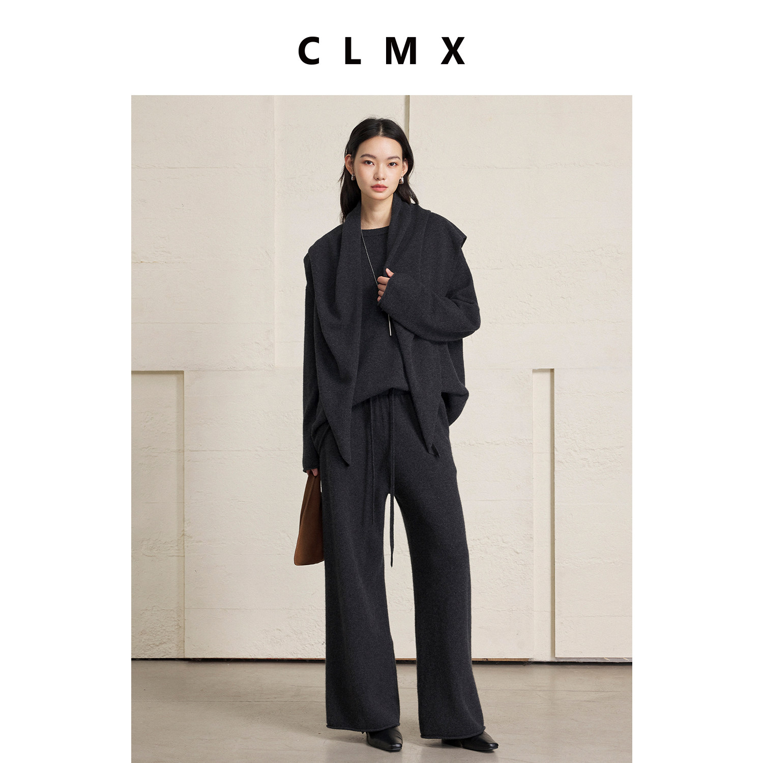 CLMX柔软亲肤100%绵羊毛针织衫叠穿CP三角巾毛衣/松紧腰阔腿长裤