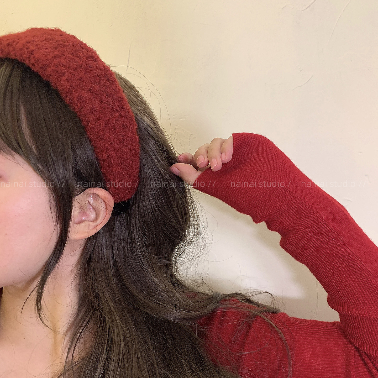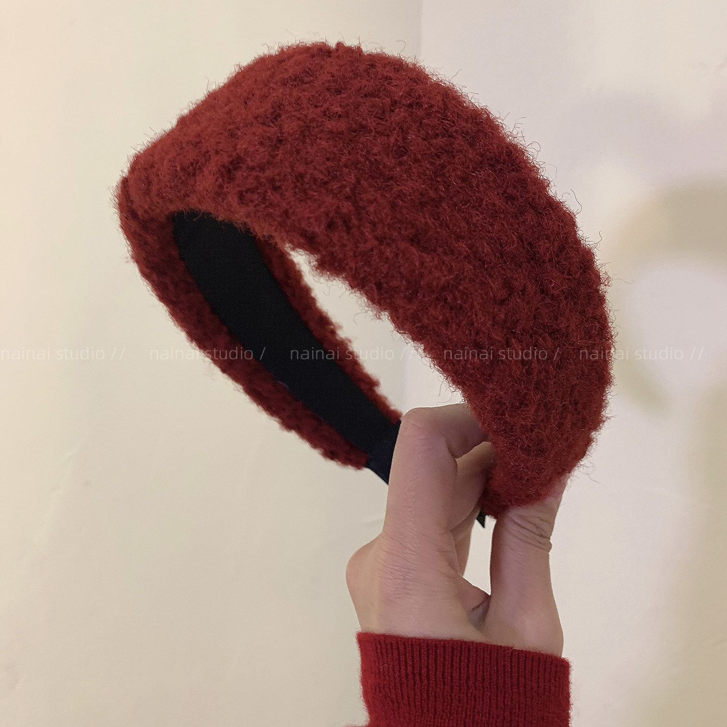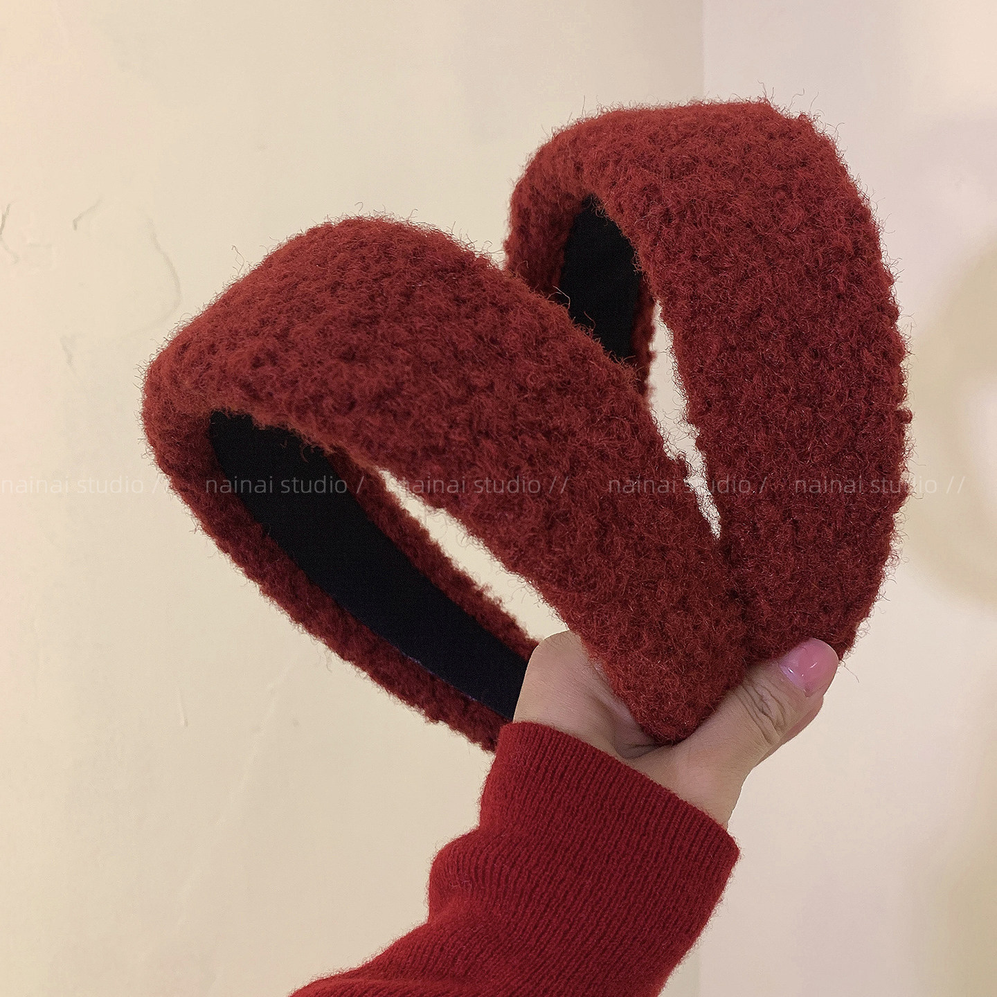 红色宽边发箍~新年法式复古高级感2026秋冬新款毛绒头箍发夹发饰