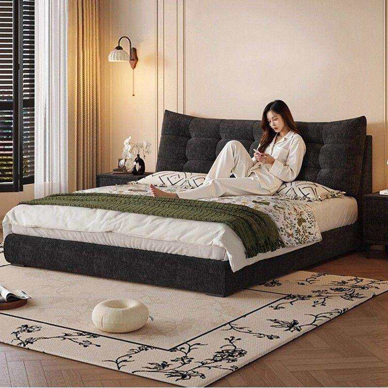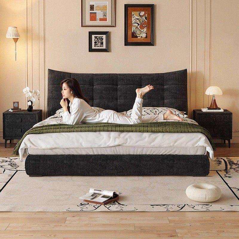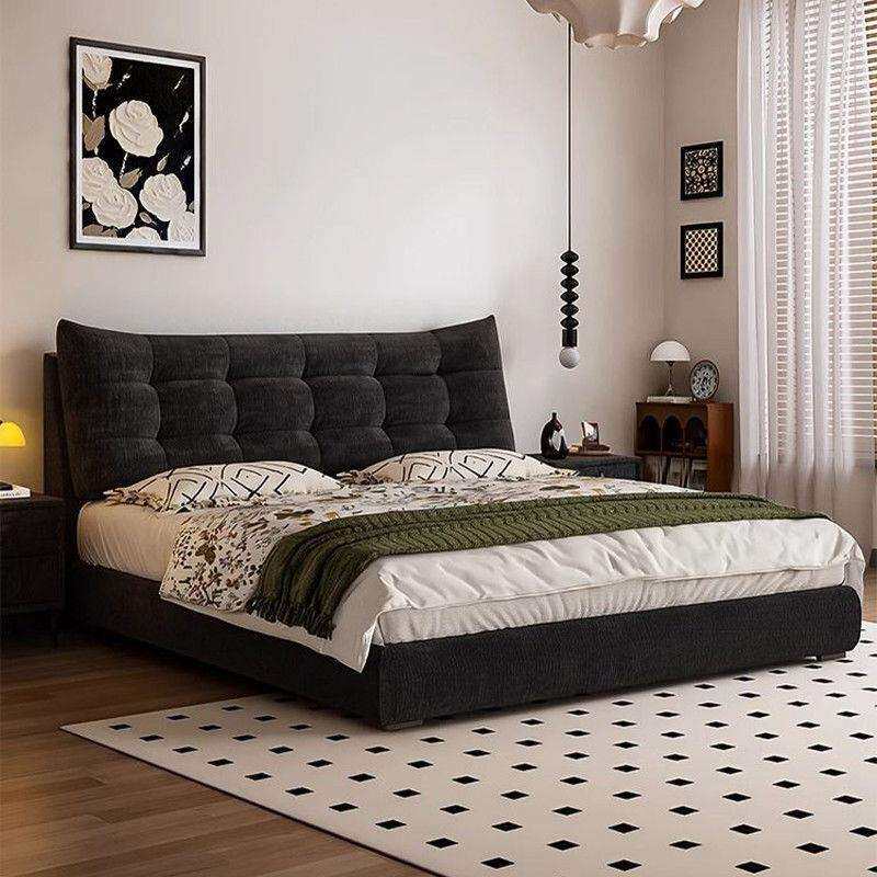 轻奢法式复古布艺床中古风大黑熊雪尼尔双人床大床主卧室大床水洗