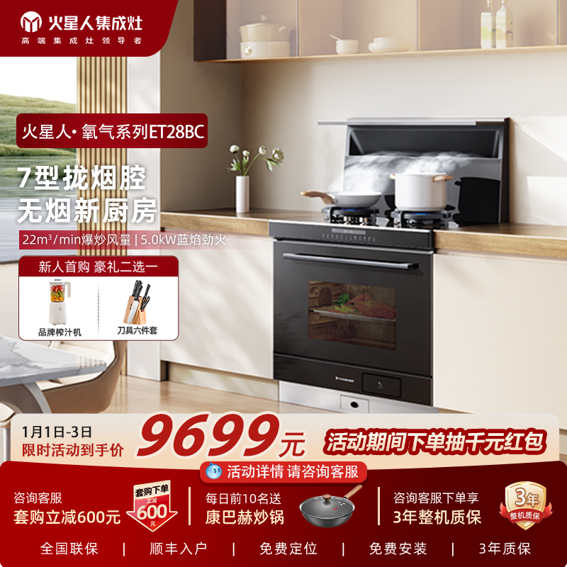 火星人ET28BC氧气系列家用蒸烤一体集成灶燃气油烟机灶具官方旗舰