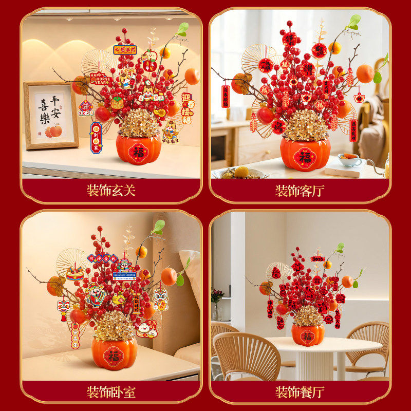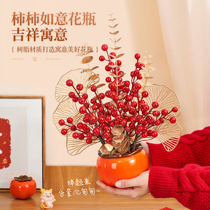 2026福桶新年装饰品柿子柿柿如意摆件客厅过年氛围布置发财果春节