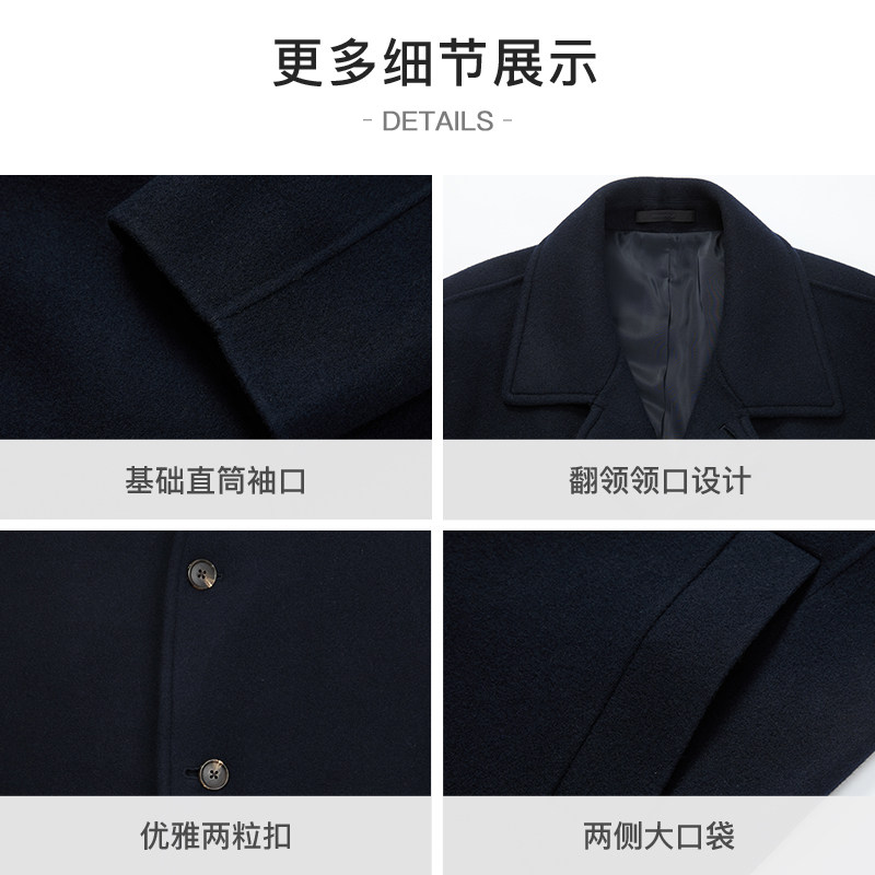 纯羊毛双面呢大衣男士 中长款过膝双面羊绒外套 西装领毛呢子风衣