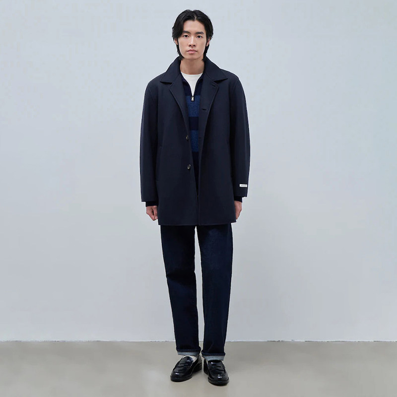 100%绵羊毛BEANPOLE滨波男士休闲职场优雅风简约藏青双面针织大衣