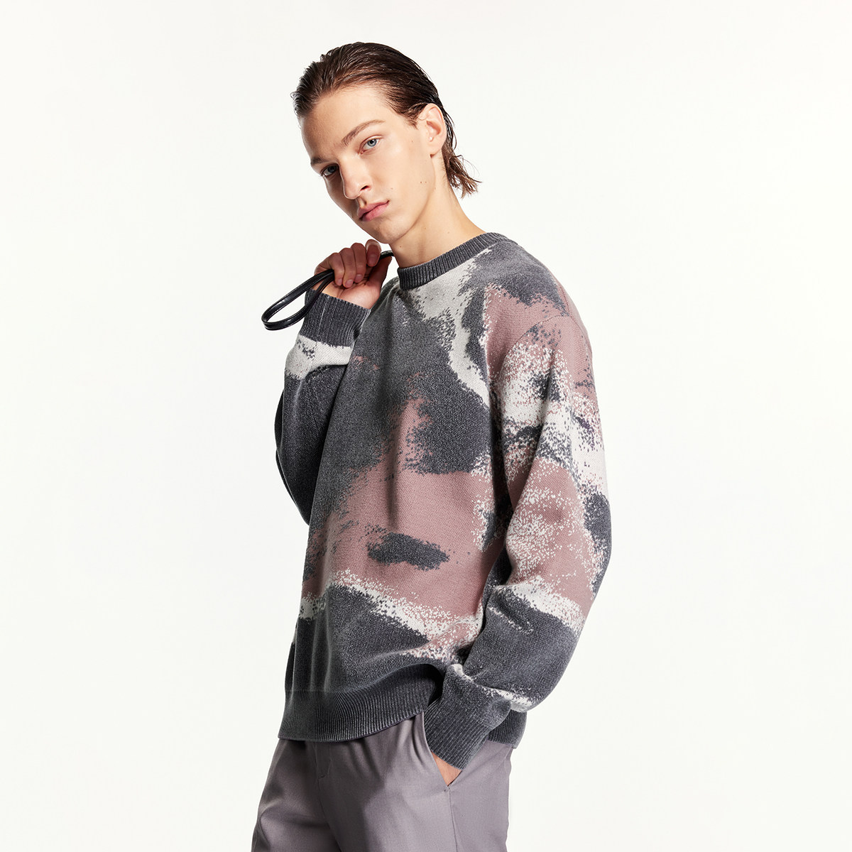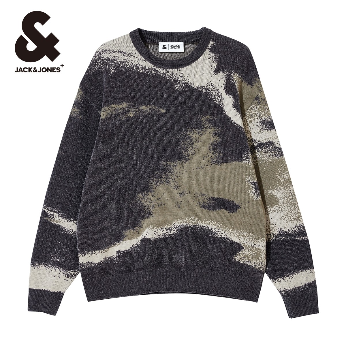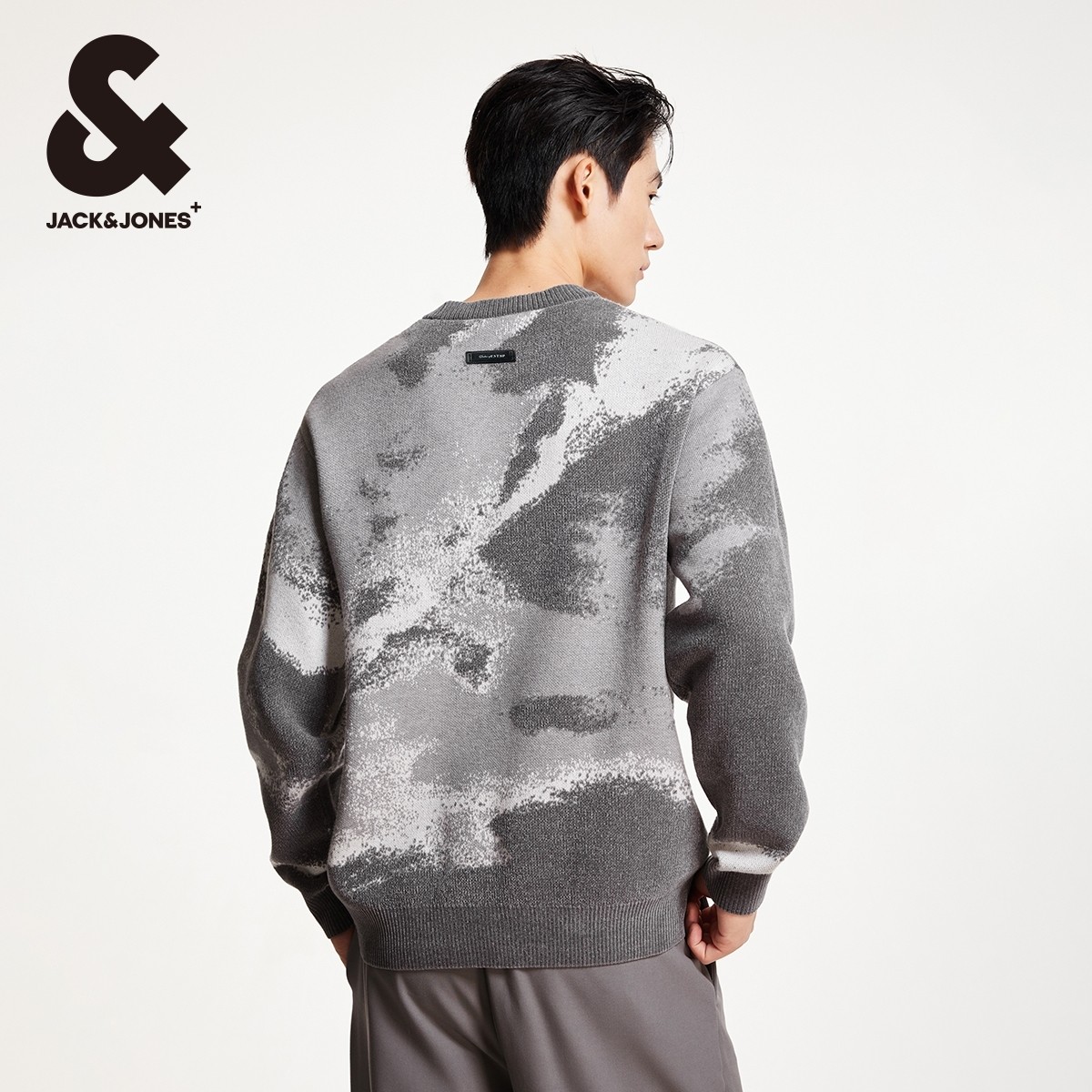 杰克琼斯男装秋冬新罗纹圆领袖口衣身提花满印舒适百搭毛衣针织衫
