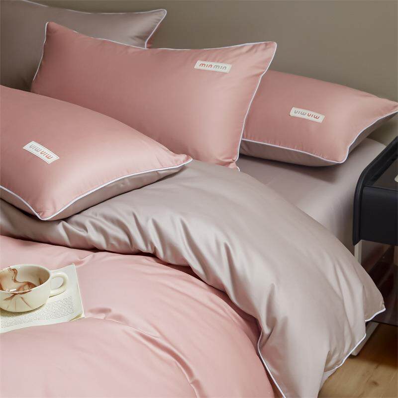 轻奢60S长绒棉4件套高端滚边撞色简约纯棉耐磨耐用单双人床品套件