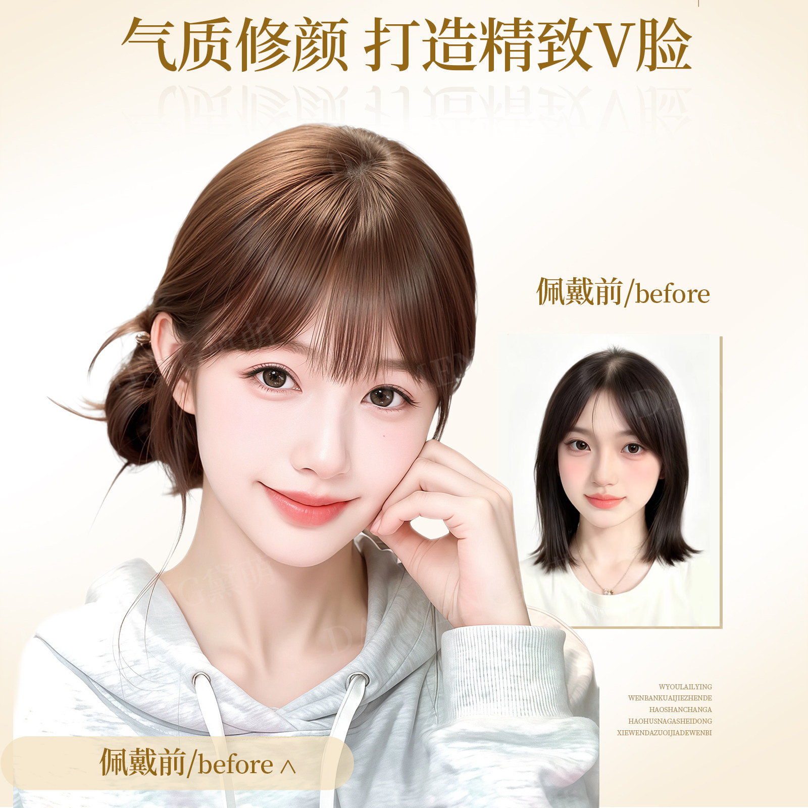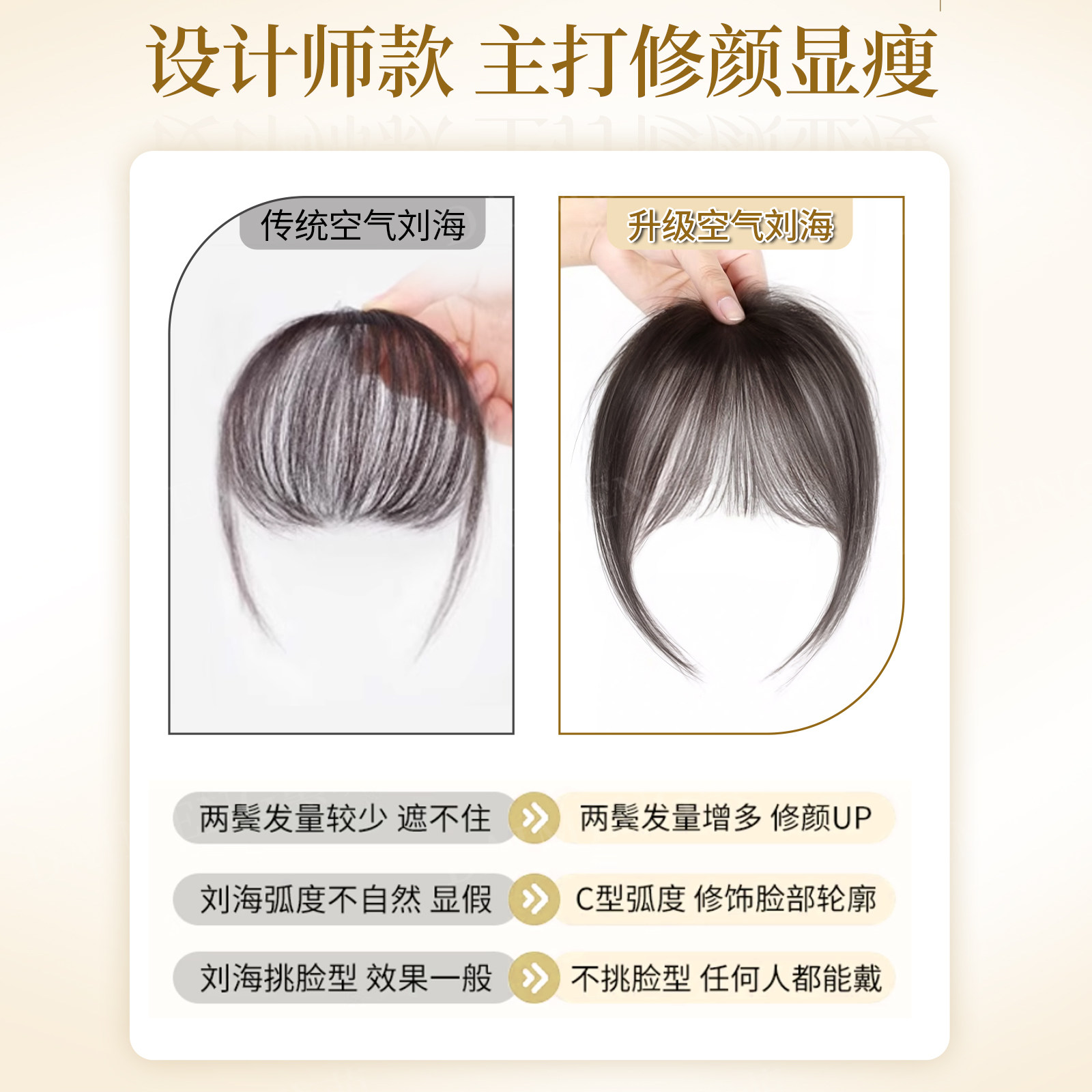 刘海假发片真发遮头顶白发补发增发量自然前额无痕高颅顶假刘海片