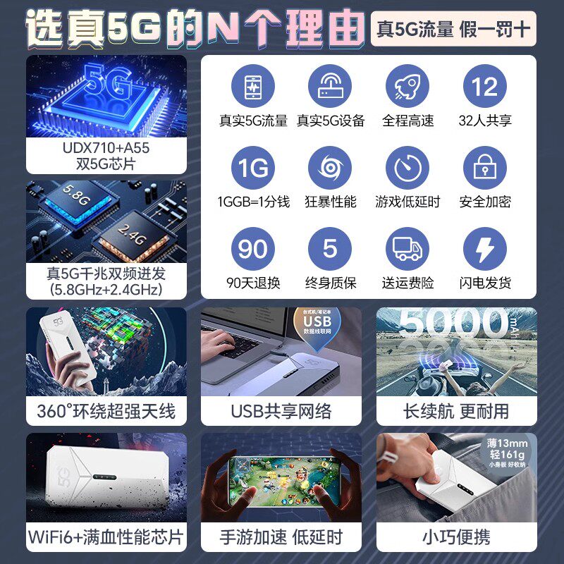 新款真5G随身wifi6移动无线网络wi-fi千兆双频全网通高速流量网卡便携路由器家庭宽带手机直播笔记本车载神器