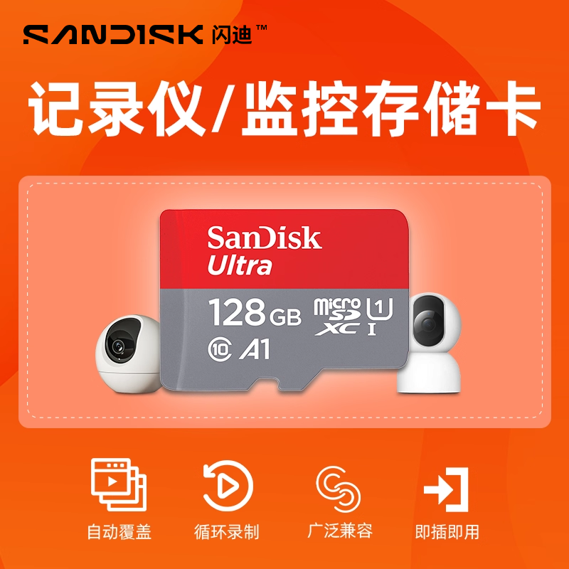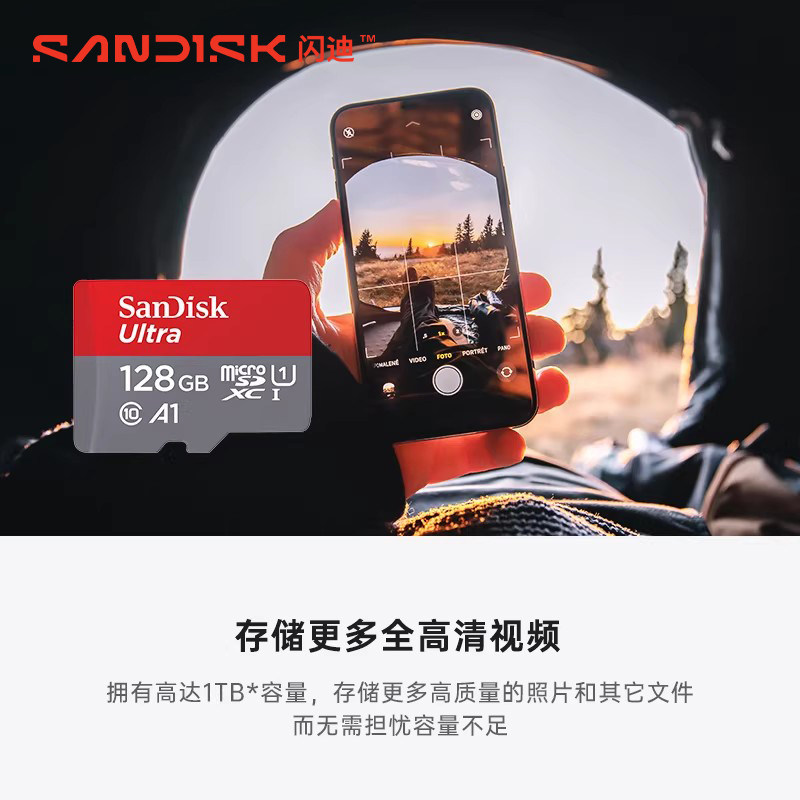 闪迪tf卡128g内存卡256g高速Microsd监控摄像头车载记录仪存储卡
