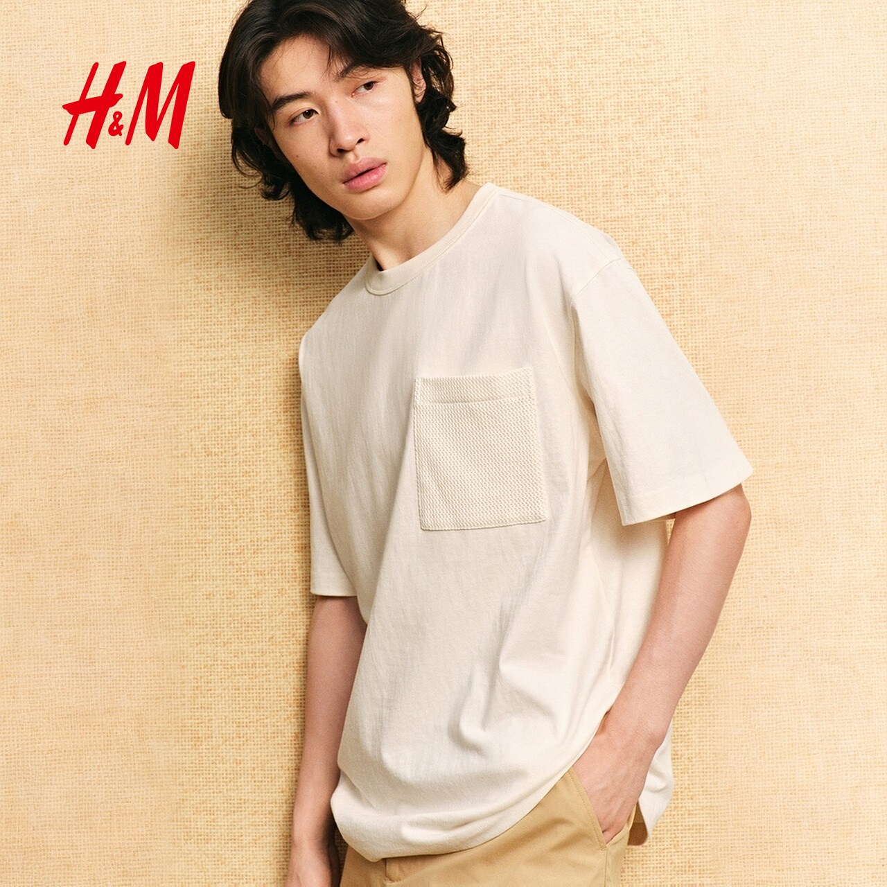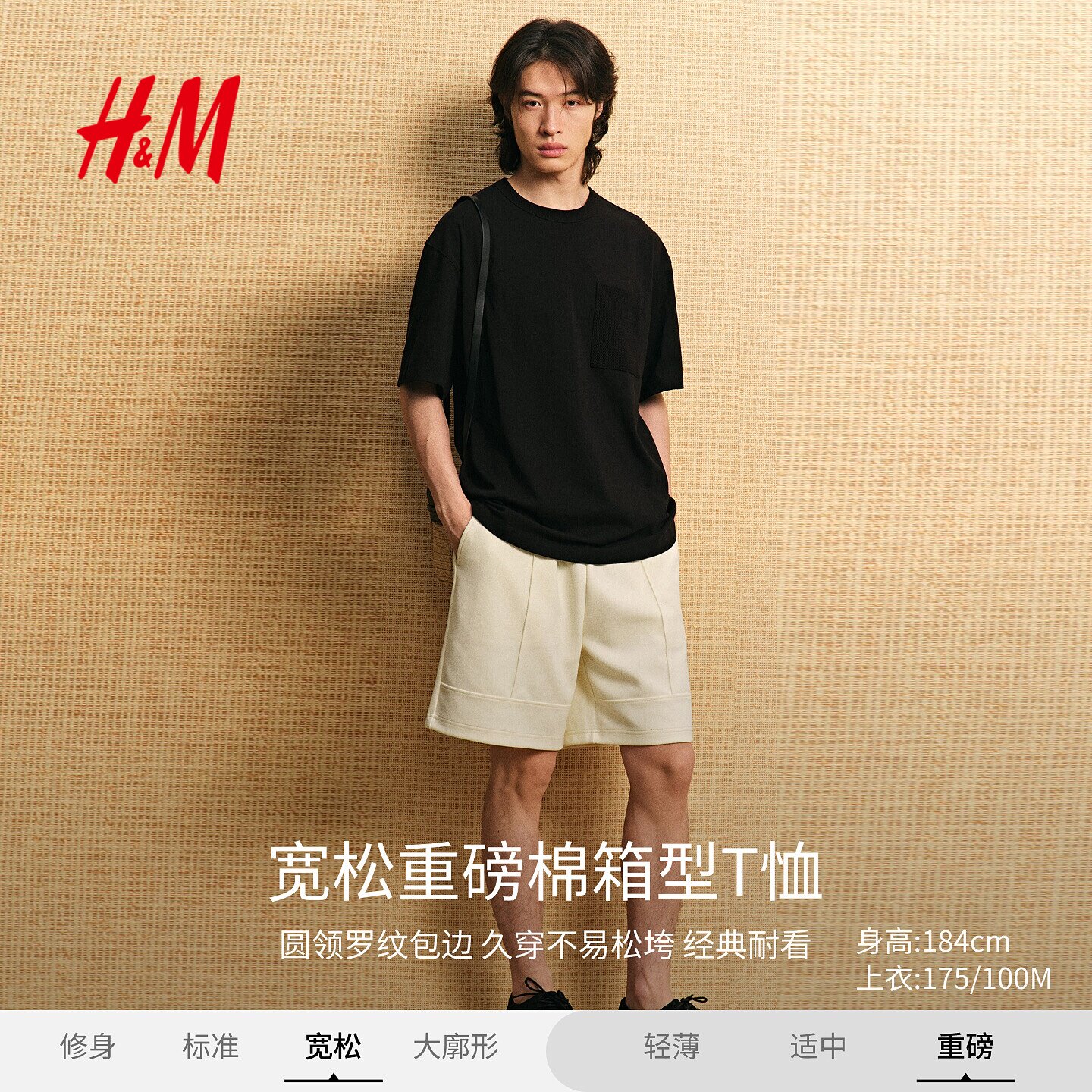 HM男装女装T恤春季重磅棉质箱型宽松口袋短袖户外出游上衣1288867