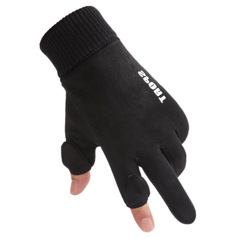 手套男冬季防风加绒保暖触屏骑行开车摩托车外卖半指漏指防水防滑