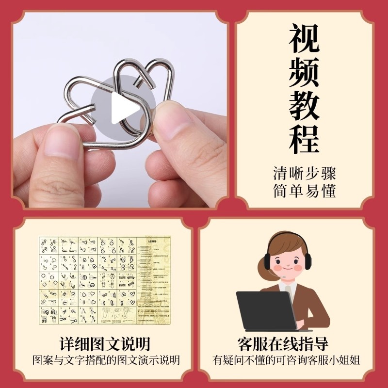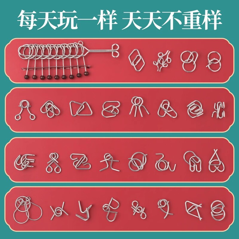 九连环智力解扣24件套儿童鲁班锁孔明锁全套小学生益智玩具解环扣