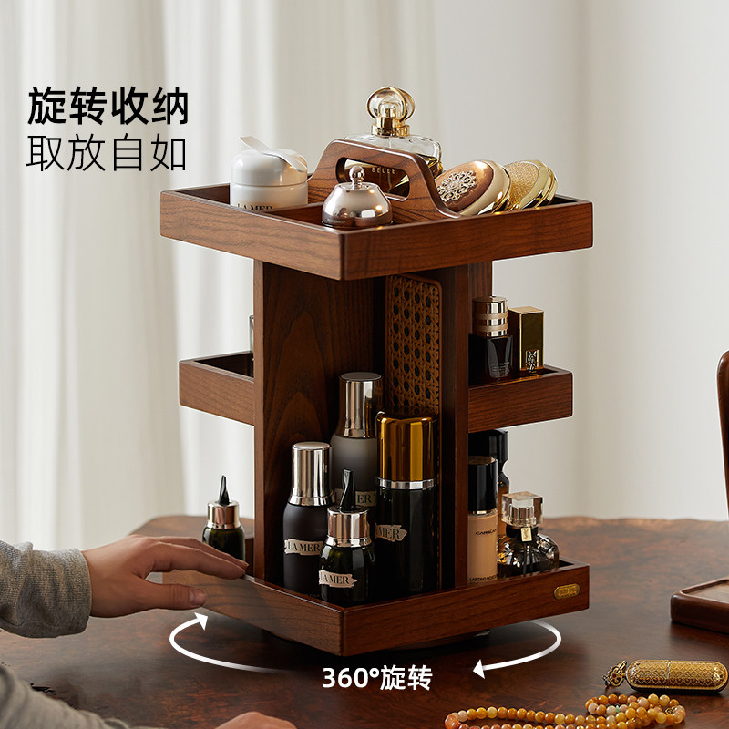 高级感桌面化妆品收纳盒口红香水整理收纳架护肤品多层旋转置物架