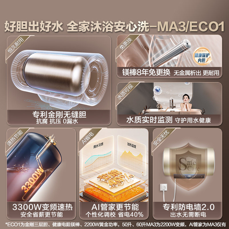 海尔电热水器家用卫生间洗澡速热一级能效节能官方旗舰镁免MA3