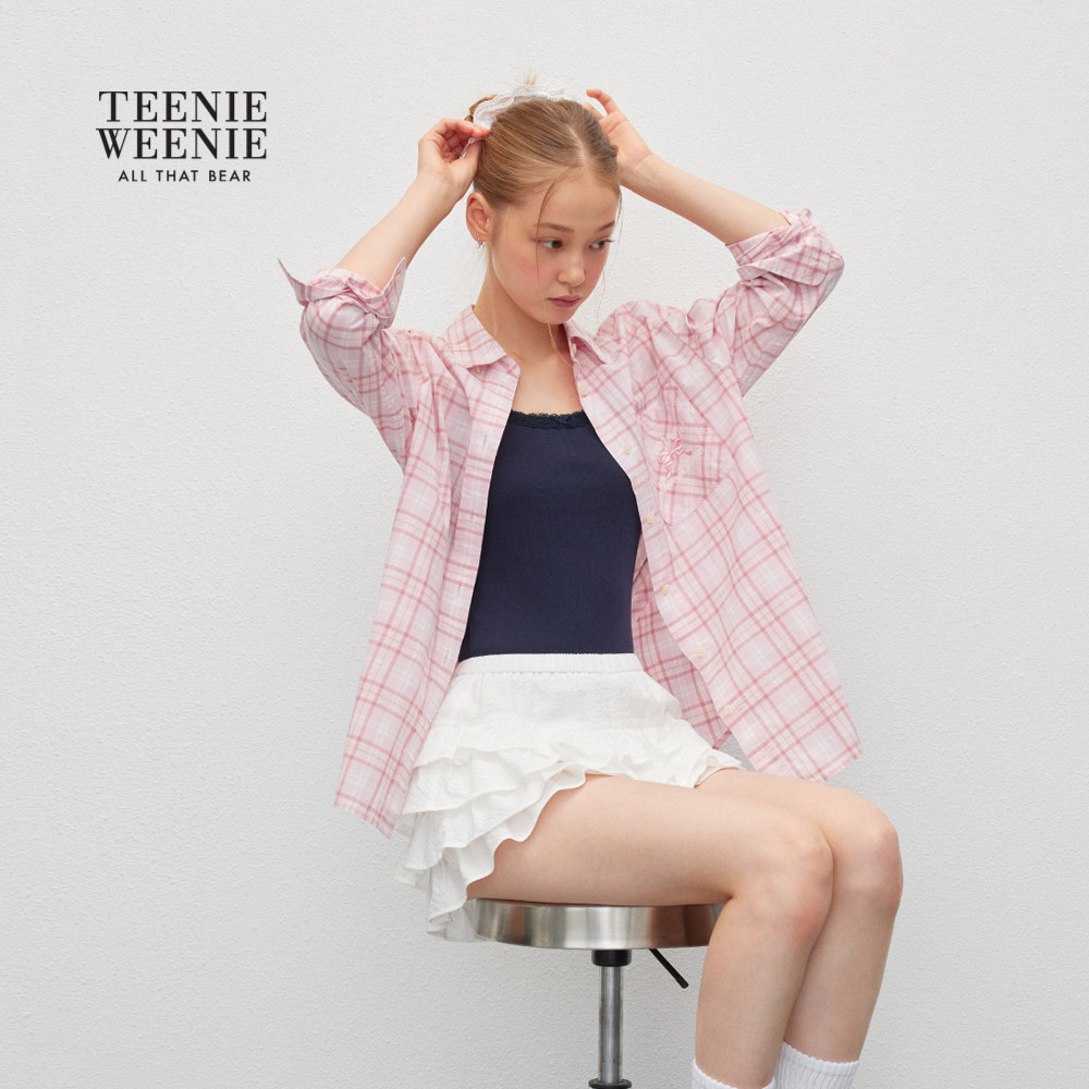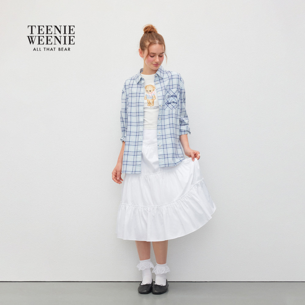 TEENIEWEENIE bearnova25秋季新款学院风蓝色宽松棉格纹长袖衬衫