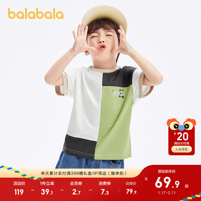 巴拉巴拉童装宝宝短袖t恤儿童衣服男童上衣2025新款夏装速干凉感