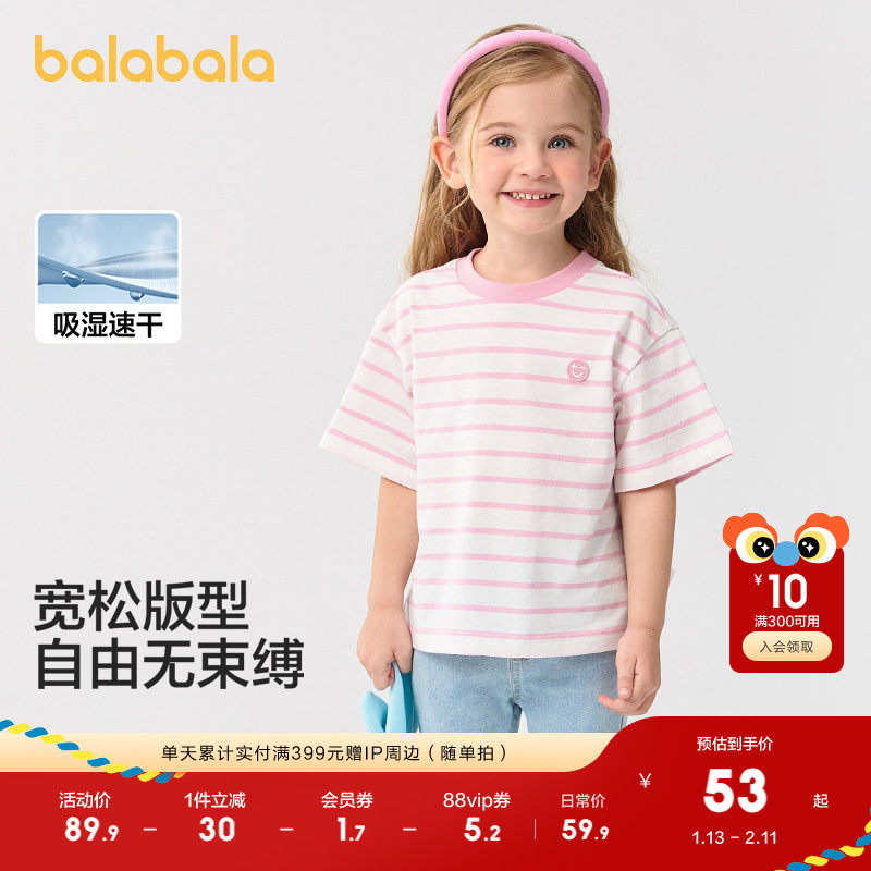 巴拉巴拉童装儿童短袖T恤2025新款男童女童春夏装吸湿速干亲子潮