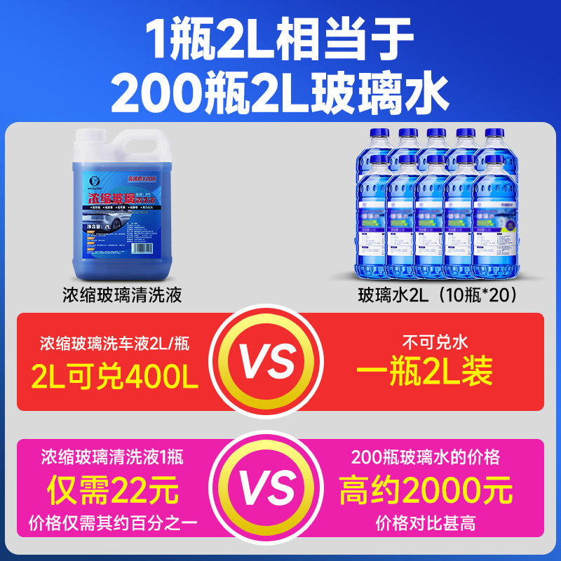 德国原液汽车玻璃水2L装防雨镀膜去油膜虫胶强力清洁除垢冬季防冻