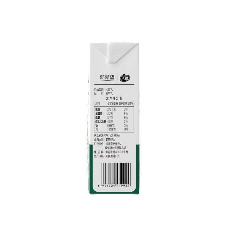 新希望天香纯牛奶200ml*24盒*1提学生营养早餐奶整箱装原生盒装