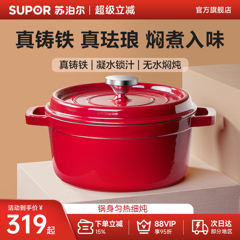 苏泊尔珐琅锅铸铁锅家用炖锅炖盅砂锅汤锅焖烧锅煮锅电磁炉通用