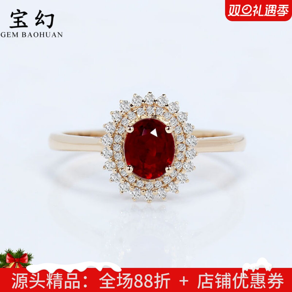 明艳天然鸽血红宝石双层戴妃款戒指 18K玫瑰金镶钻石彩金女戒定制