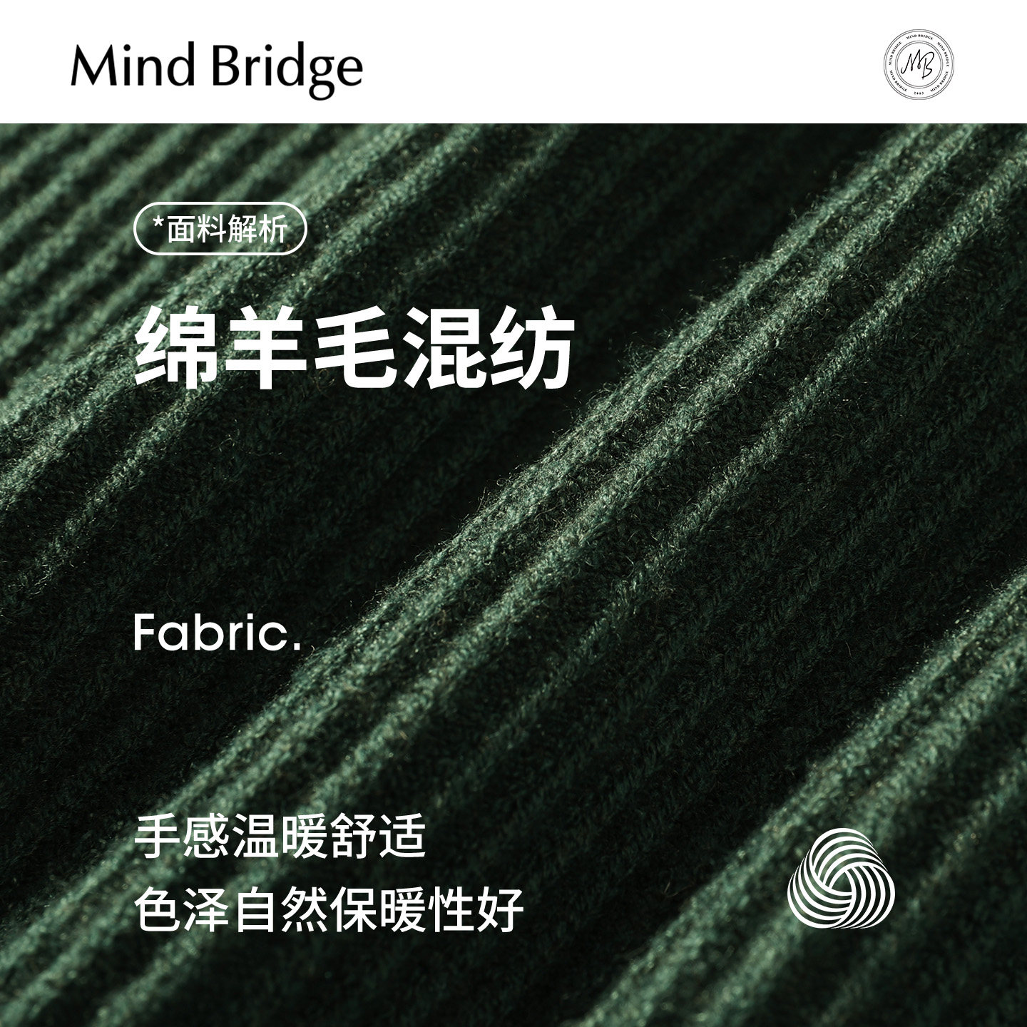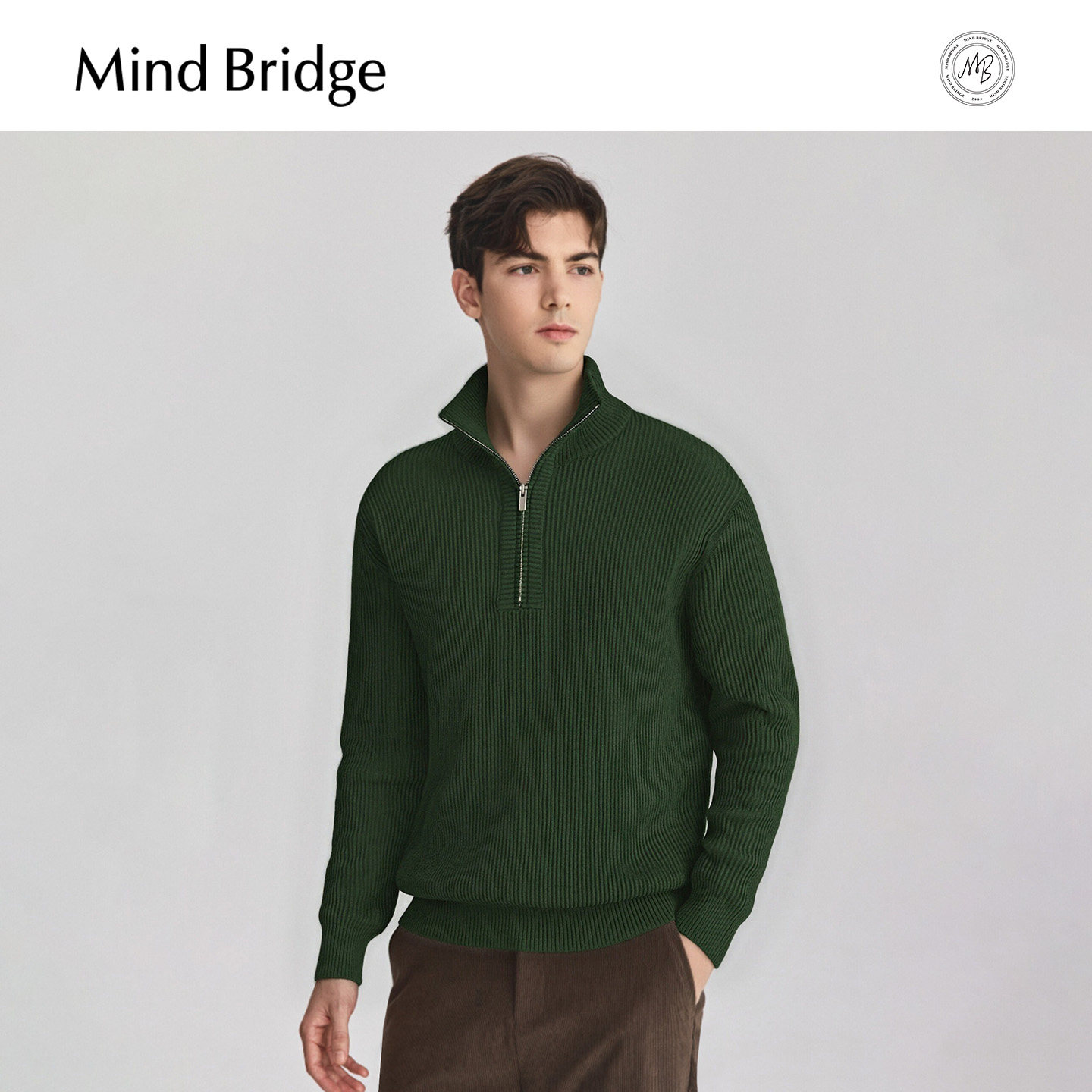 Mind Bridge2025年冬纯色休闲半拉链针织衫男士肌理感半高领毛衣