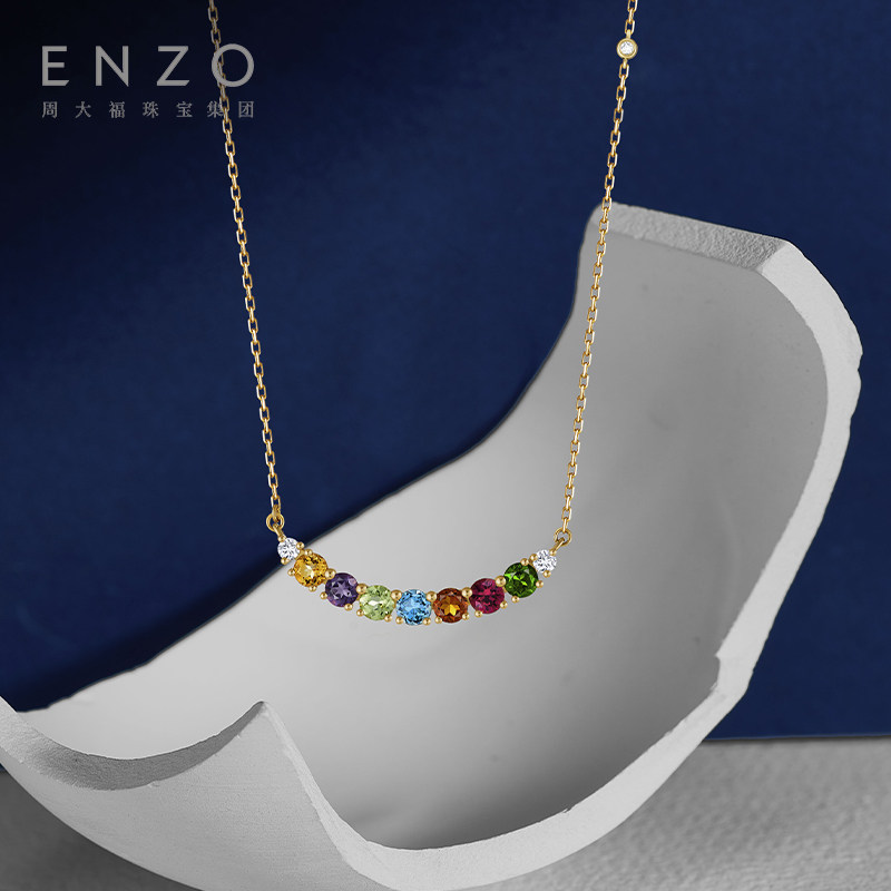 ENZO彩虹系列18K金多彩宝石钻石项链EZV8482新春礼物