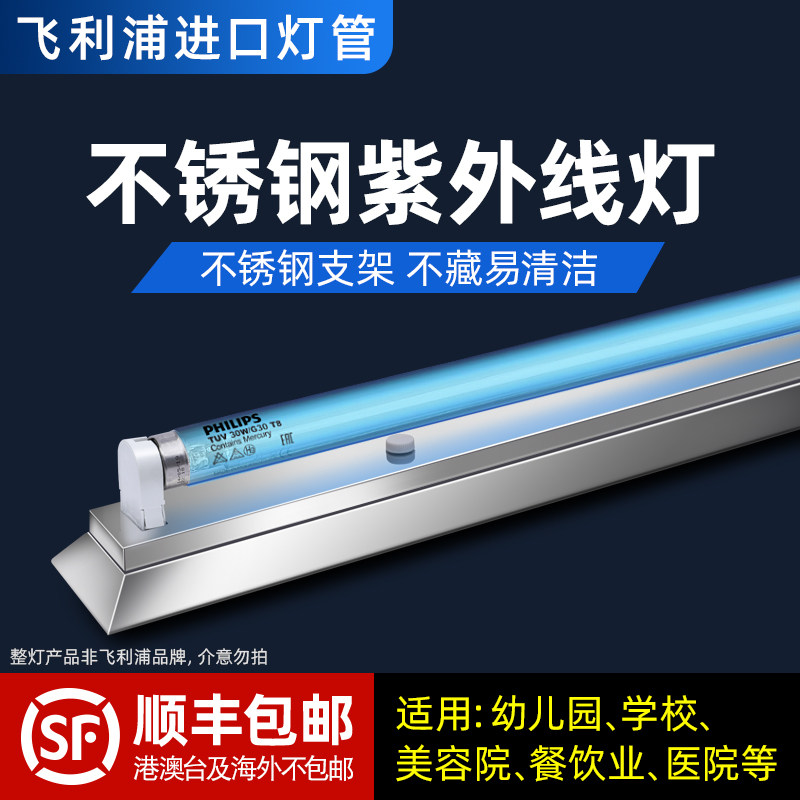 飞利浦紫外线灯管室内杀菌灯学校医疗不锈钢斜边灯架紫外线消毒灯