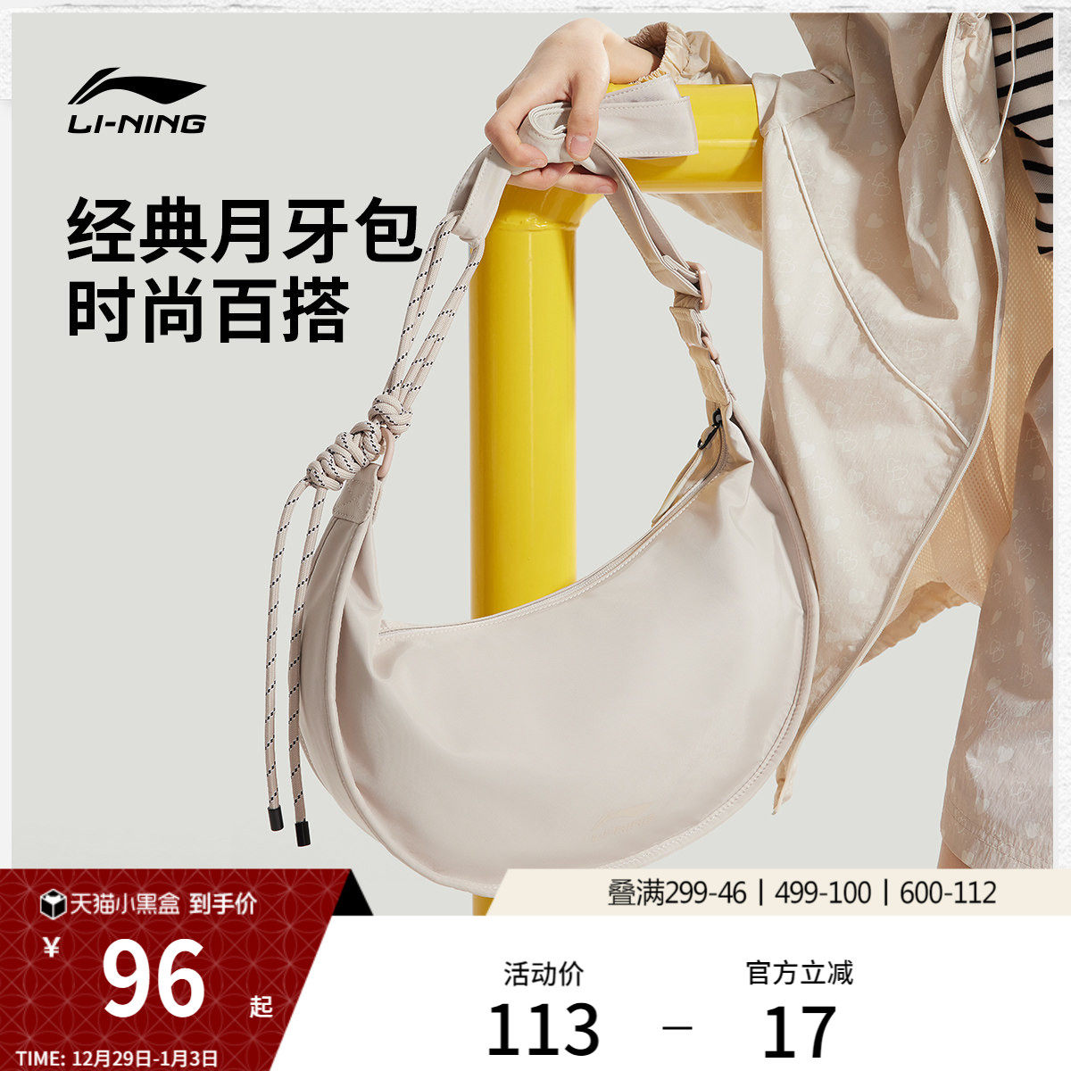 李宁斜挎包女正品百搭马年红色饺子包通勤运动休闲单肩腋下牛角包