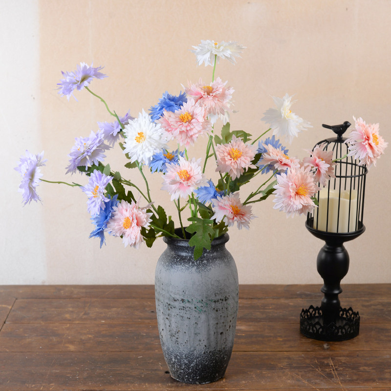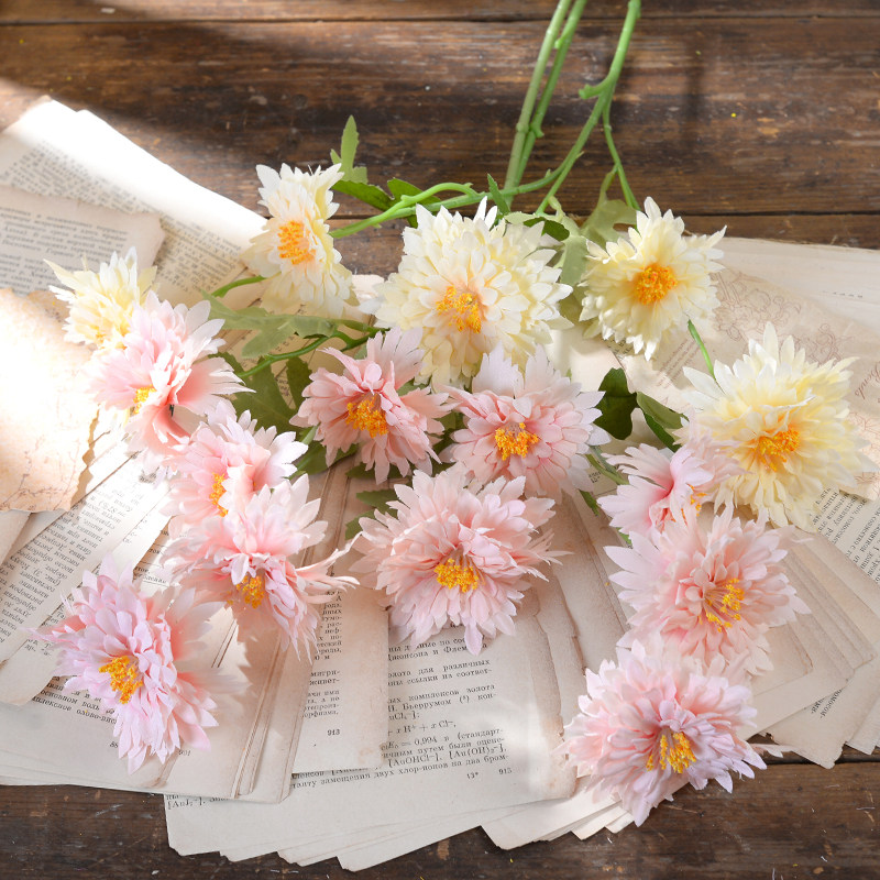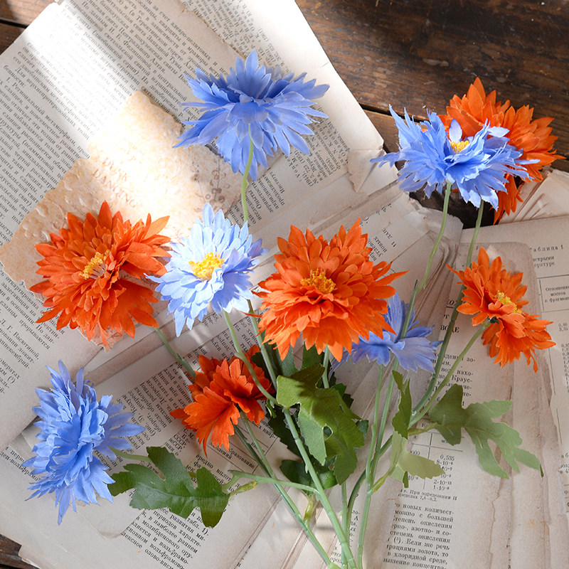 仿真花5头火焰菊花 婚庆礼堂装饰吊顶路引花摄影道具家居摆件批发