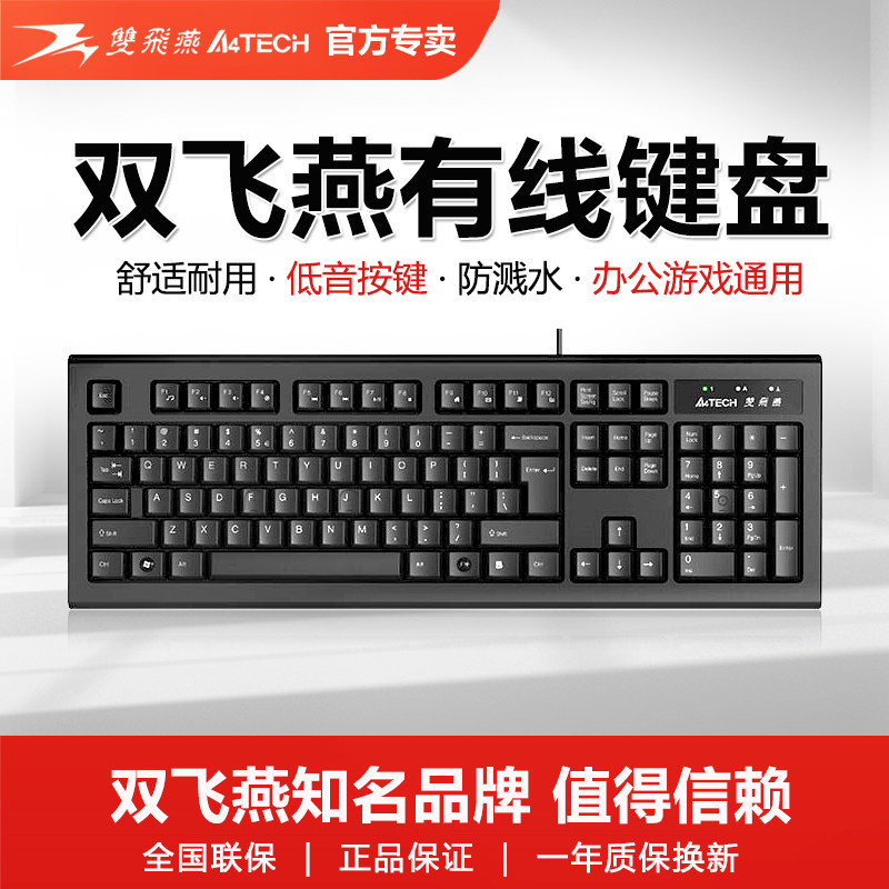 双飞燕圆角舒适防水静音有线键盘一年换新