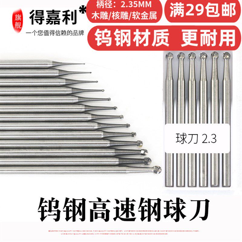 2.35mm杆钨钢0.3球刀银丝镶嵌开槽牙花针钻头 核雕玉雕刻模具打磨