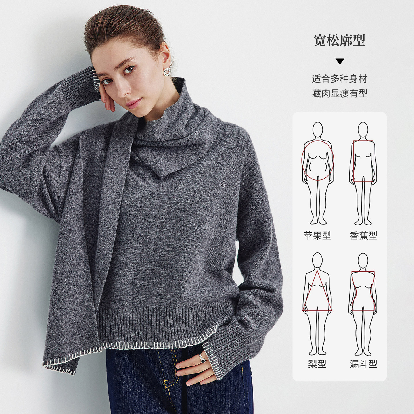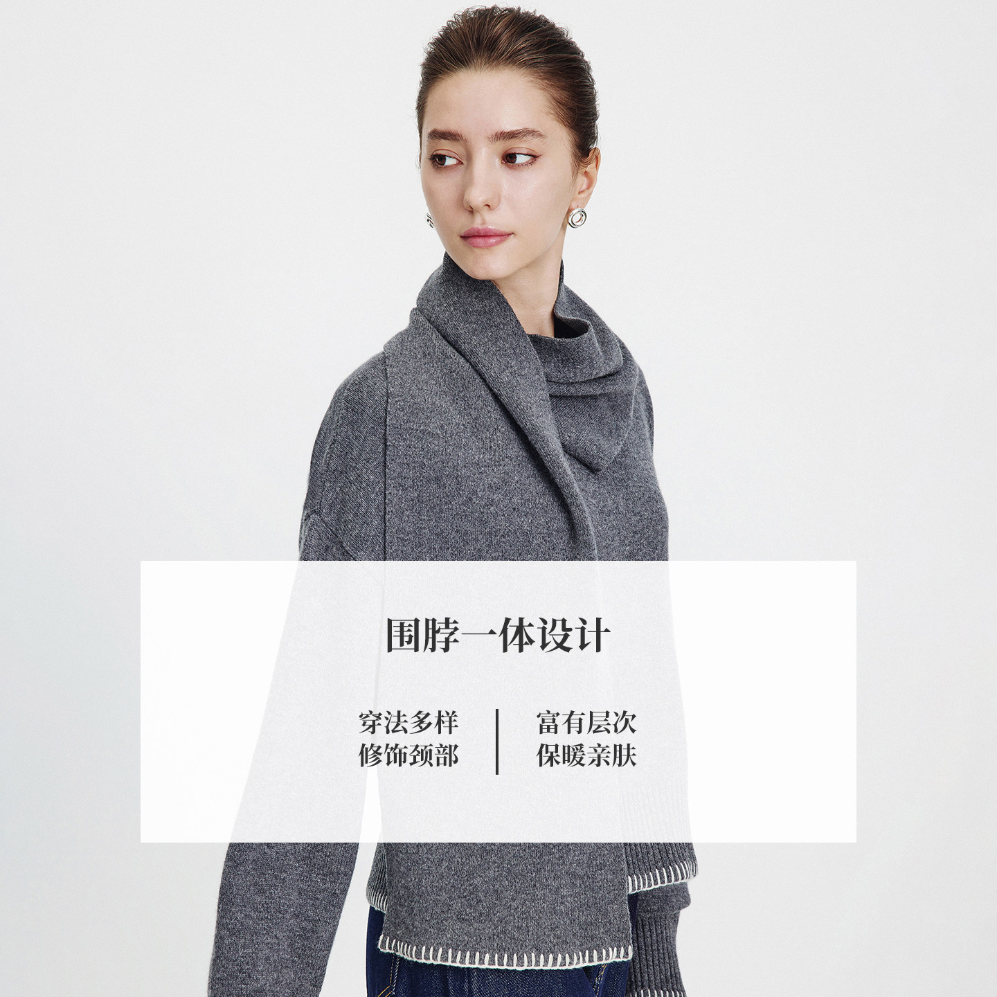 [纯羊毛]Navigare意大利小帆船围巾领针织衫女士秋冬新款通勤毛衣